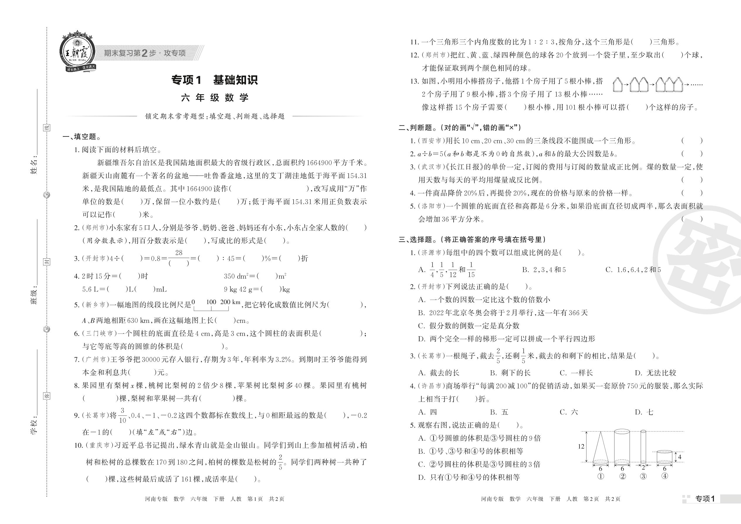 王朝霞期末专项卷——基础知识六年级下册数学(人教版)_R220329163329024【1】