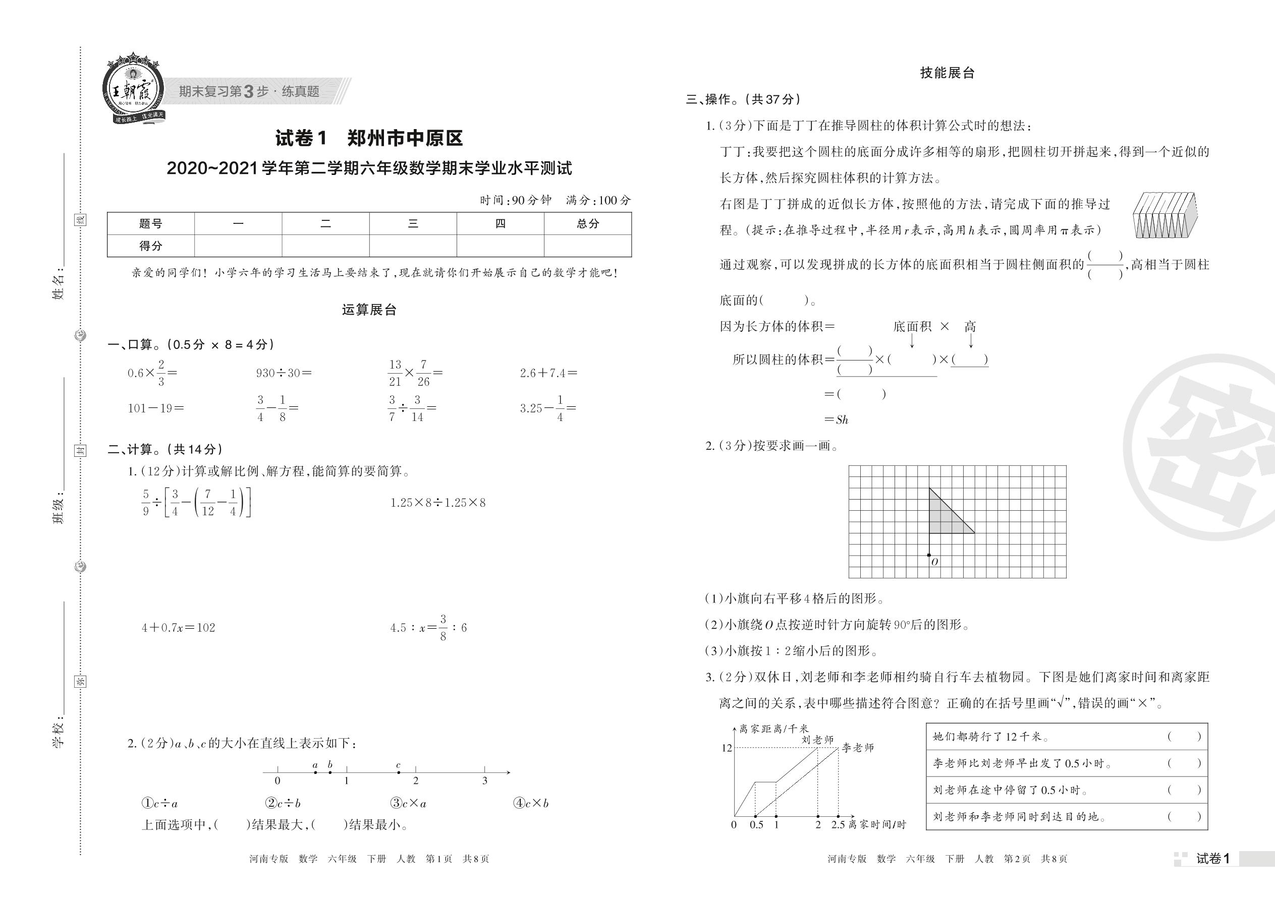 郑州市中原区2020~2021学年第二学期六年级数学期末学业水平测试(人教版)【1】