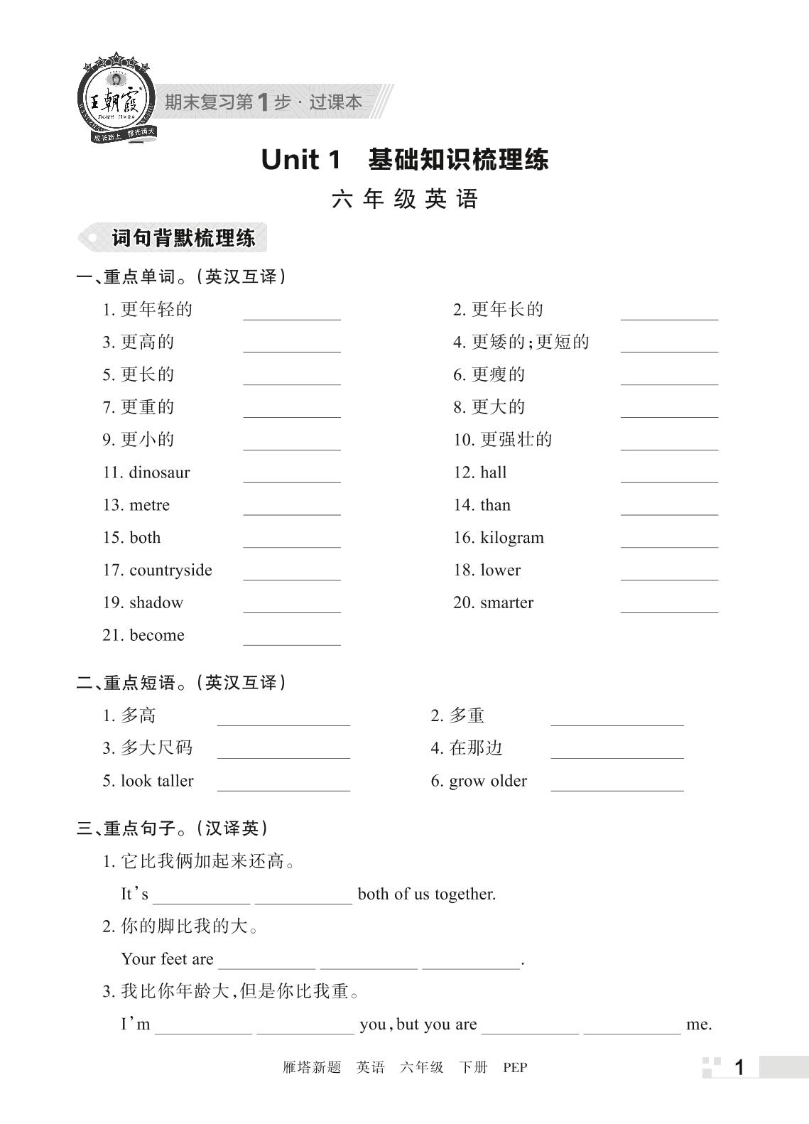 王朝霞期末过课本——Unit 1 基础知识梳理练六年级下册英语(PEP版)_R220329163908815