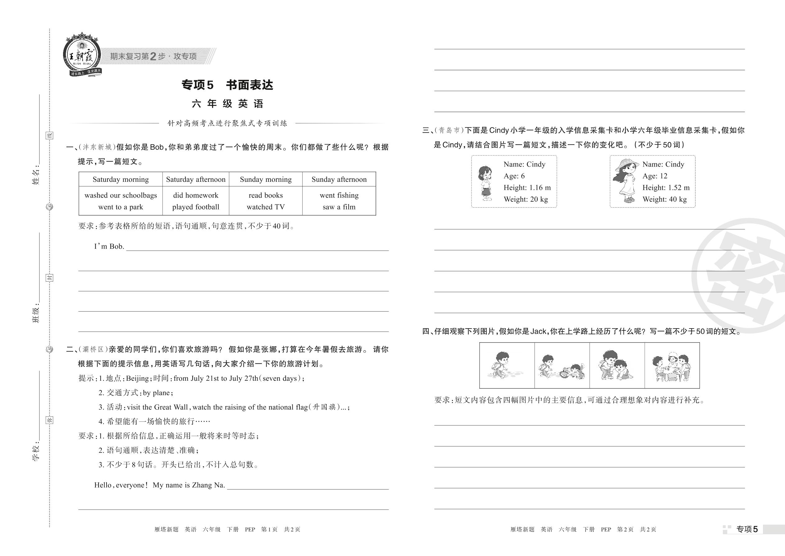 王朝霞期末专项卷——书面表达六年级下册英语(PEP版)_R220329163908776【5】