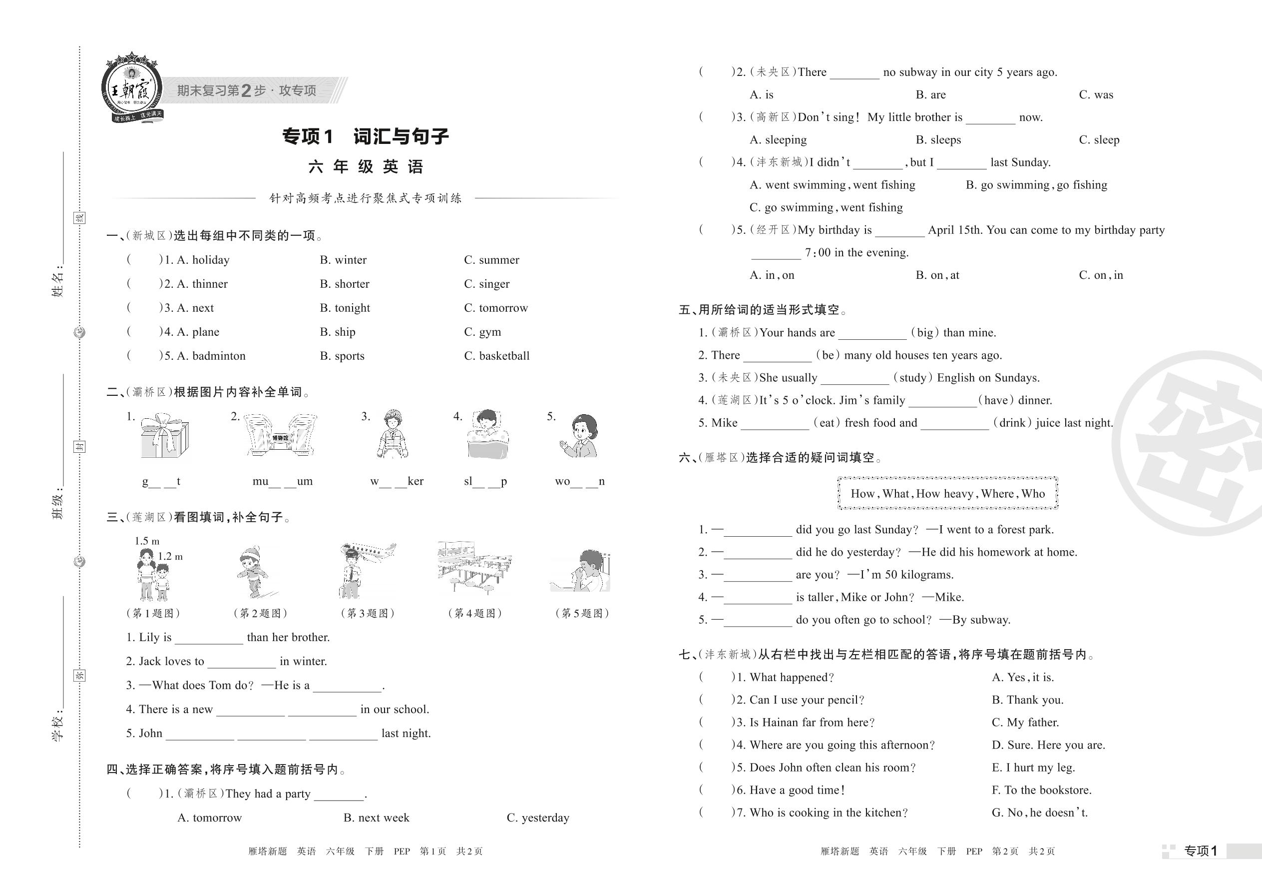 王朝霞期末专项卷——词汇与句子六年级下册英语(PEP版)_R220329163908180【1】