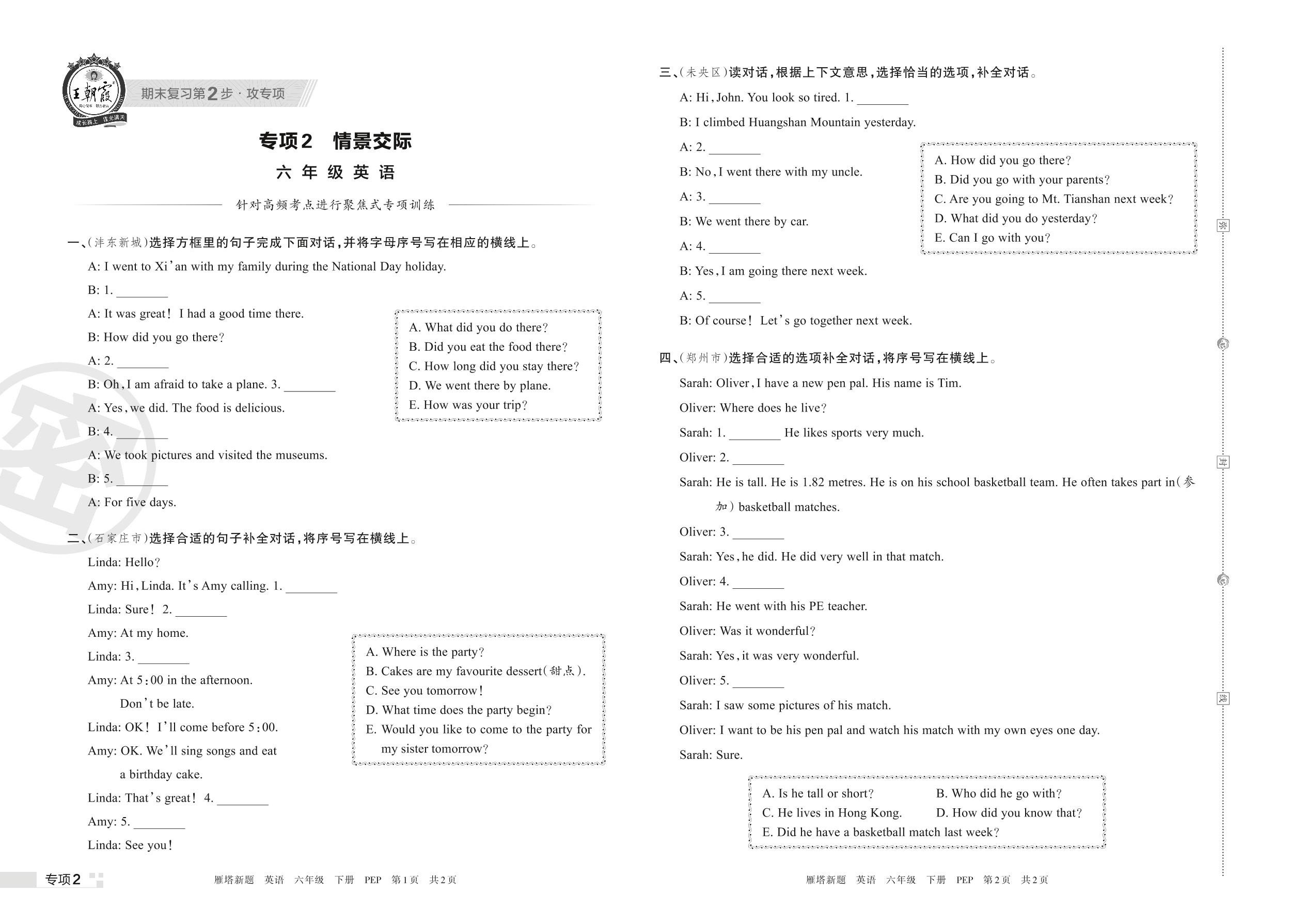 王朝霞期末专项卷——情景交际六年级下册英语(PEP版)_R220329163908498【2】