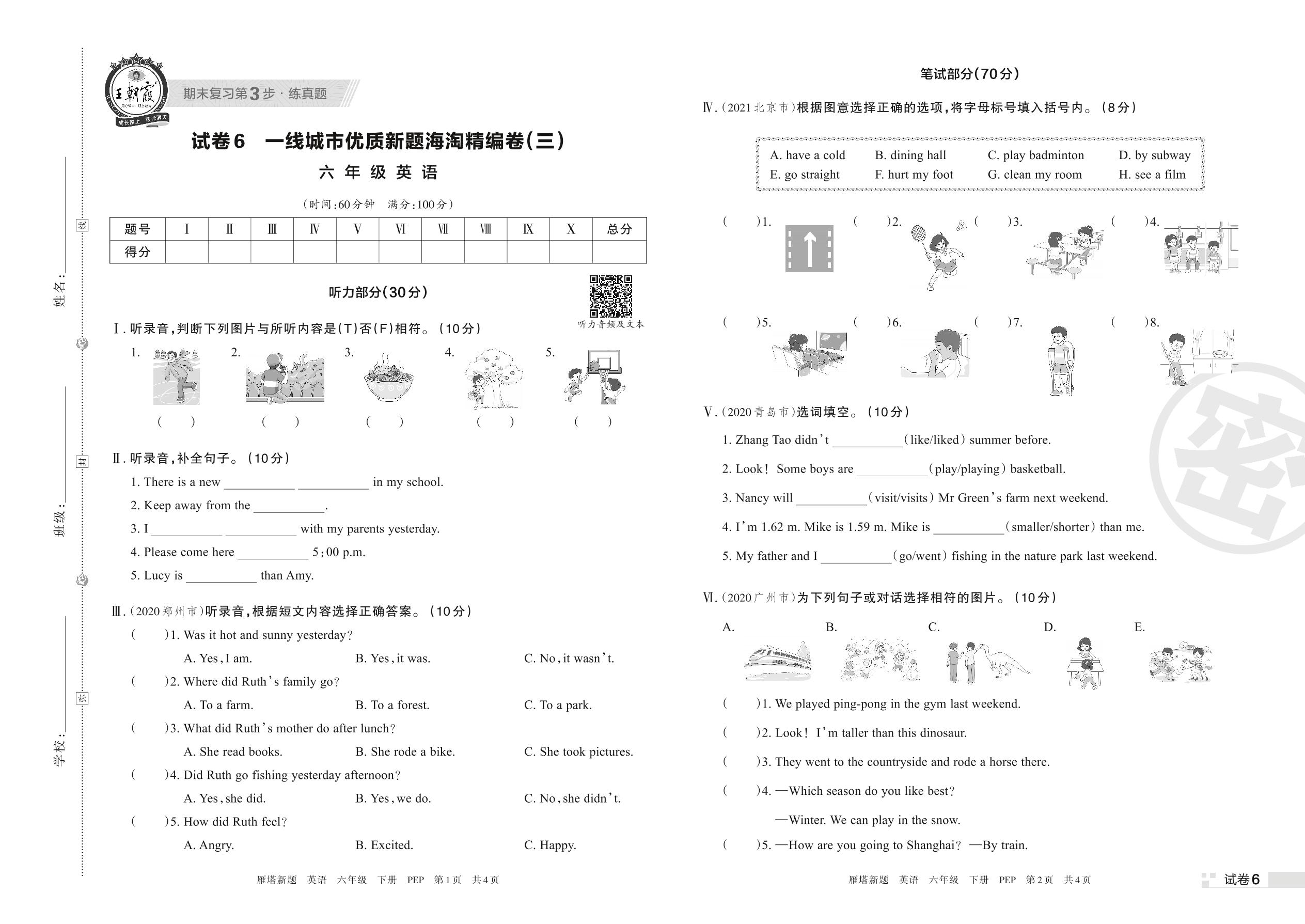 一线城市优质新题海淘精编卷(三)六年级下册英语(PEP版)【6】