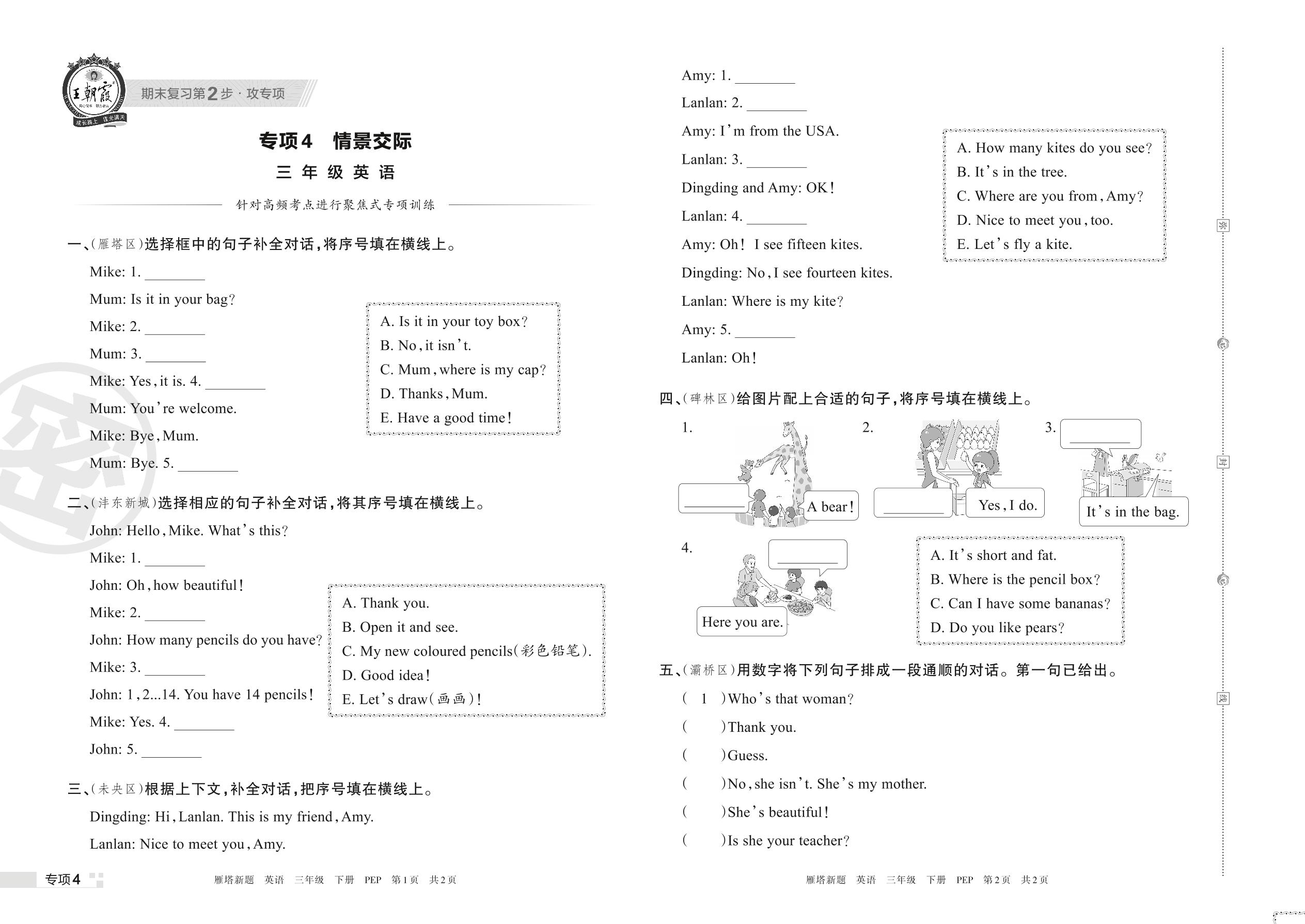 王朝霞期末专项卷——情景交际三年级下册英语(PEP版)_R220329164504968【4】