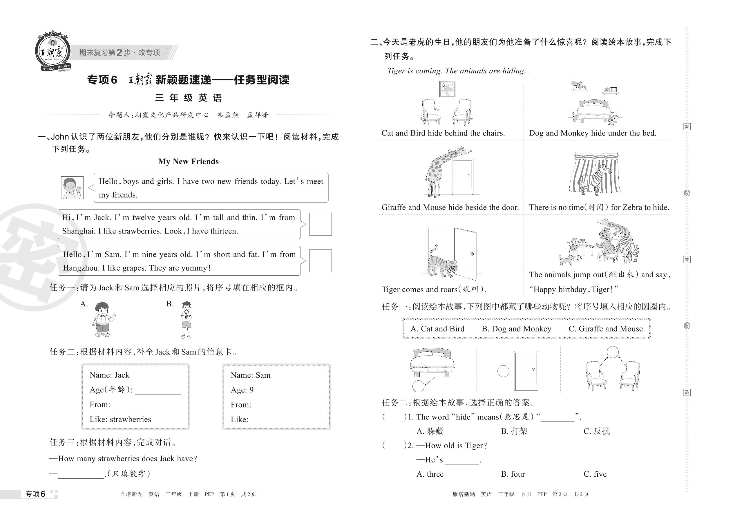 王朝霞期末专项卷——新颖题速递:任务型阅读三年级下册英语(PEP版)_R220329164504358【6】