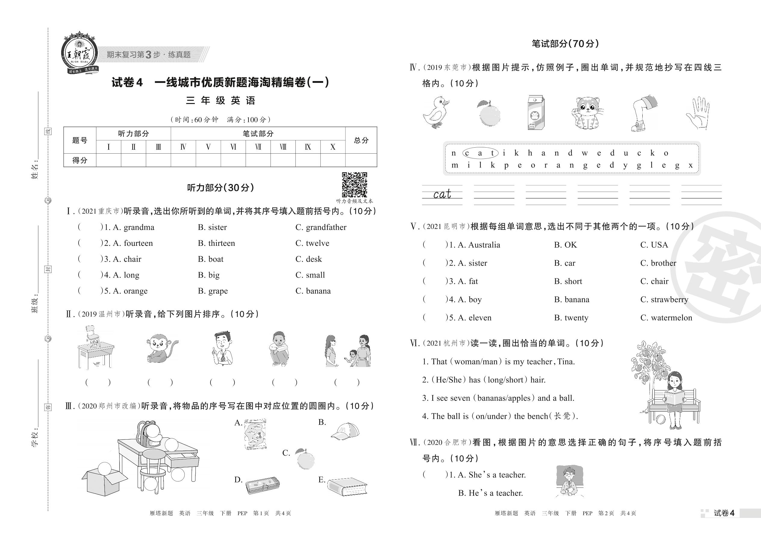 一线城市优质新题海淘精编卷(一)三年级下册英语(PEP版)【4】