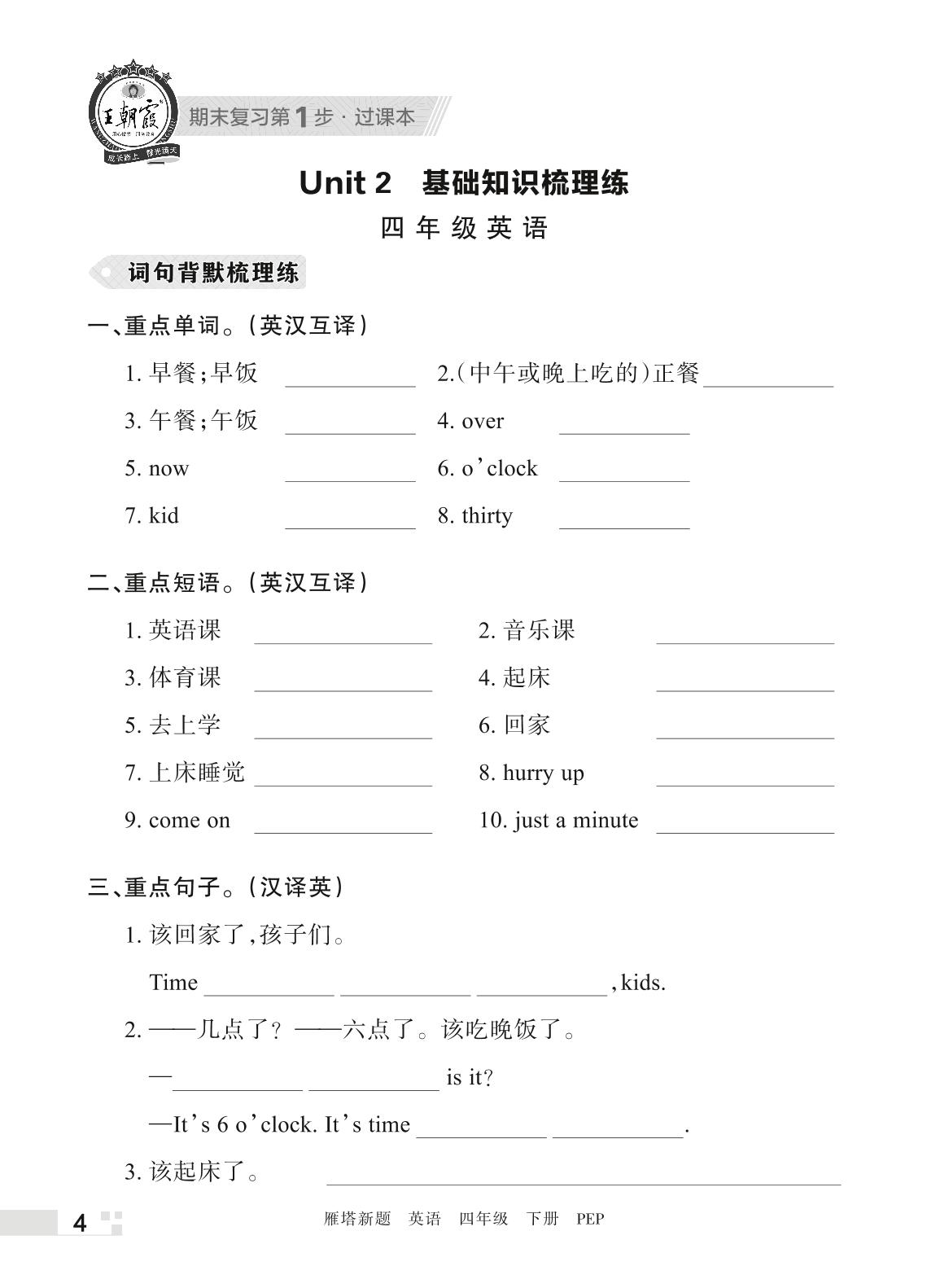 王朝霞期末过课本——Unit 2 基础知识梳理练四年级下册英语(PEP版)_R220329165011227