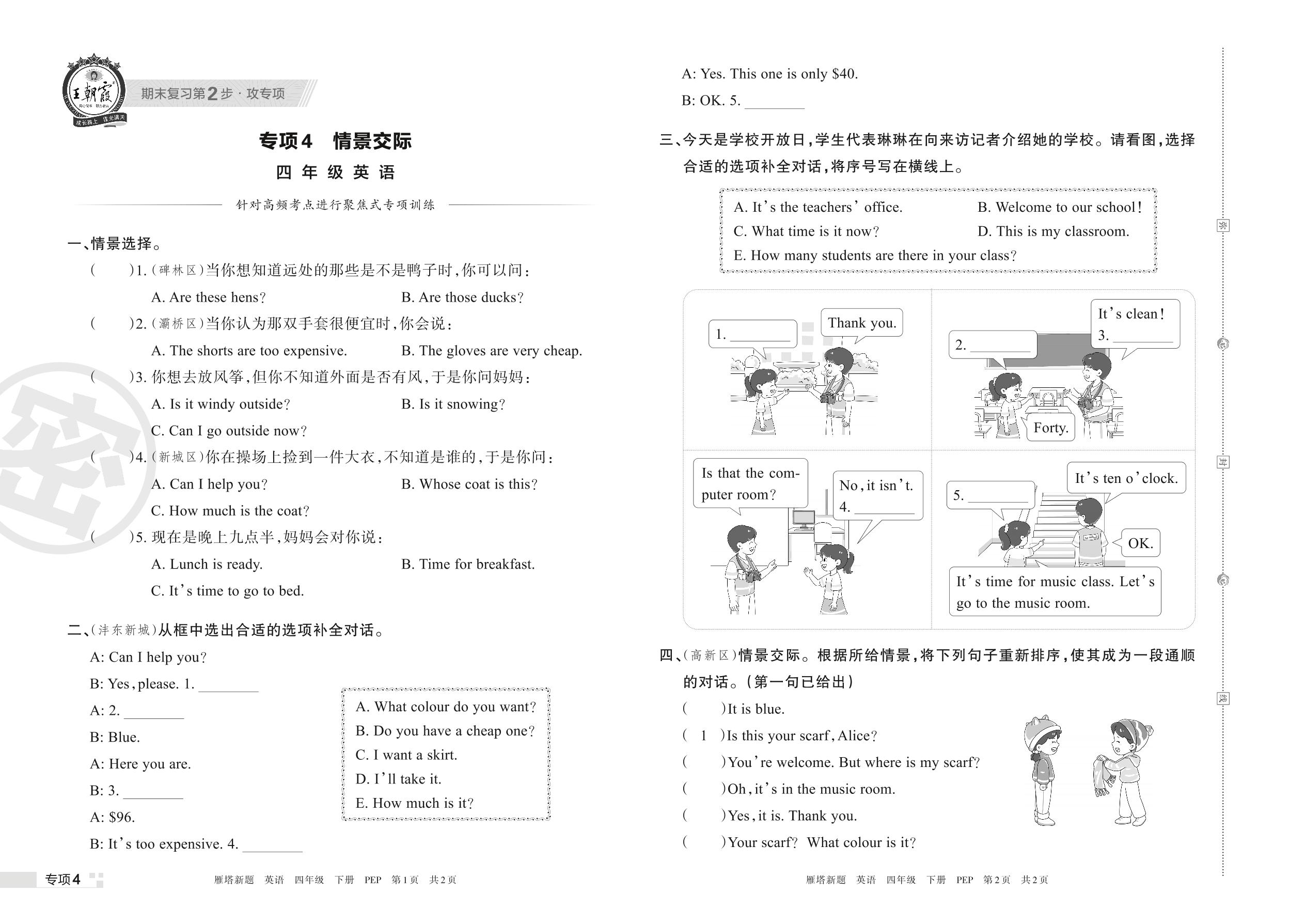 王朝霞期末专项卷——情景交际四年级下册英语(PEP版)_R220329165011314【4】