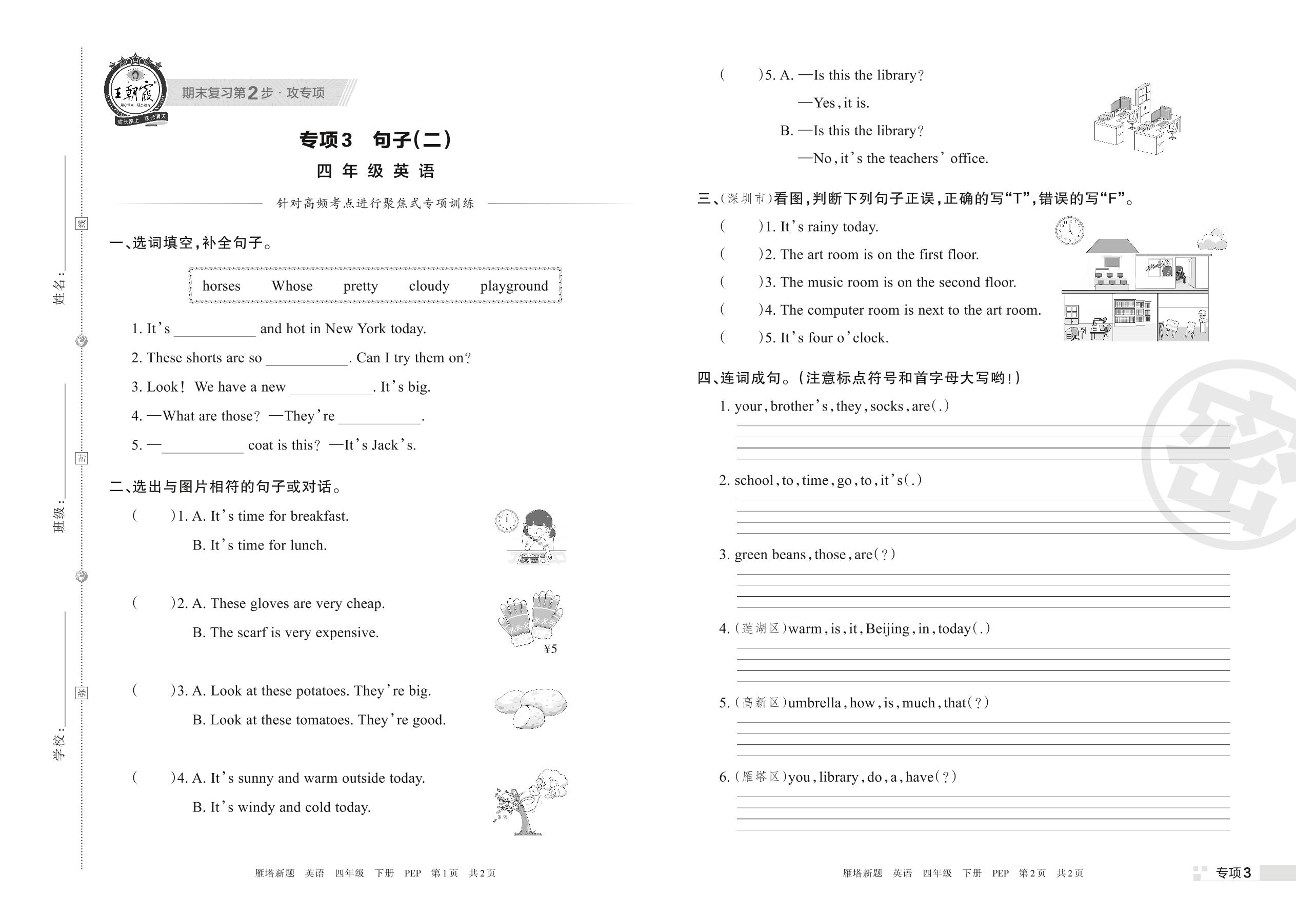 王朝霞期末专项卷——句子(二)四年级下册英语(PEP版)_R220329165011268【3】