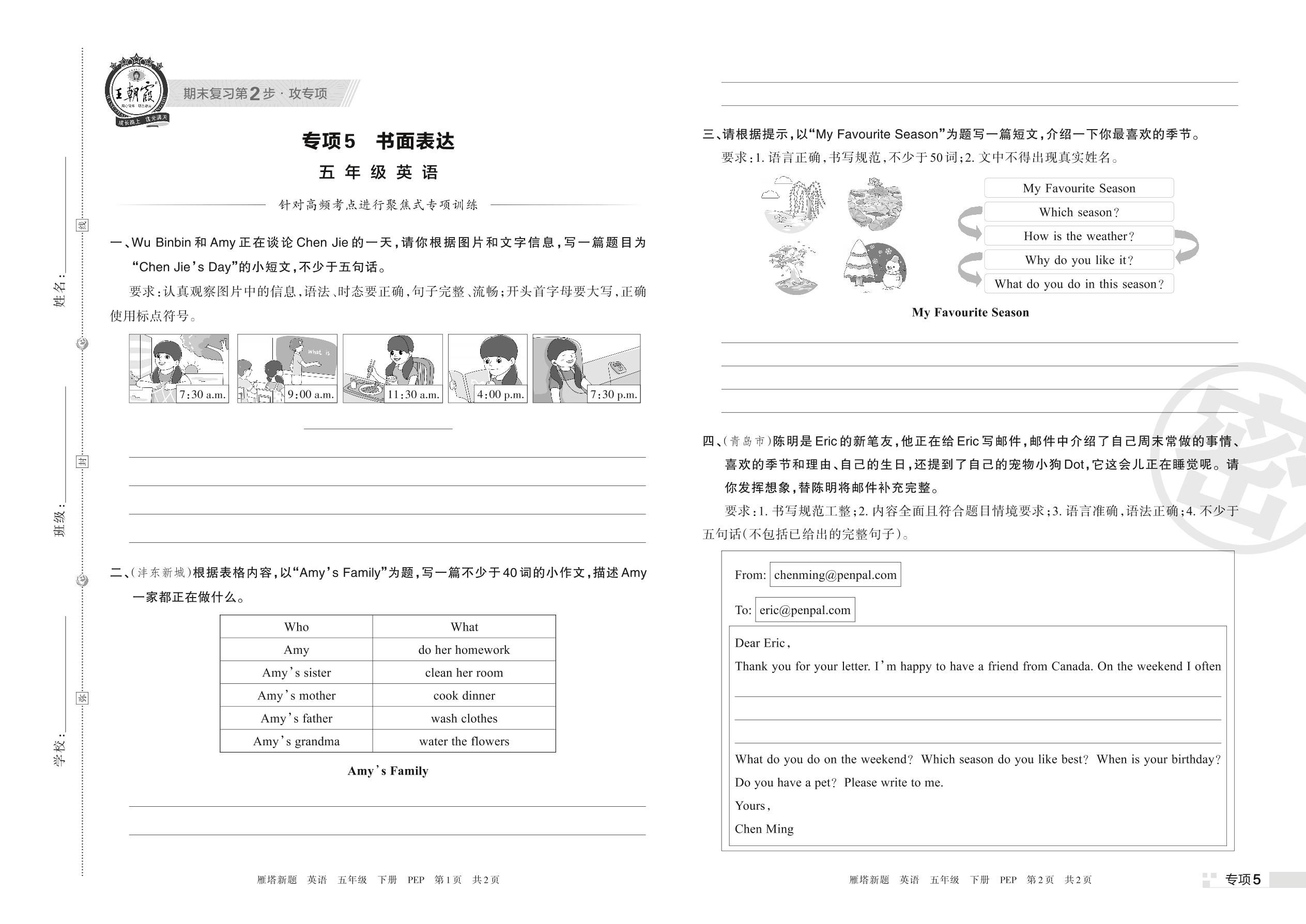 王朝霞期末专项卷——书面表达五年级下册英语(PEP版)_R220329165602961【5】
