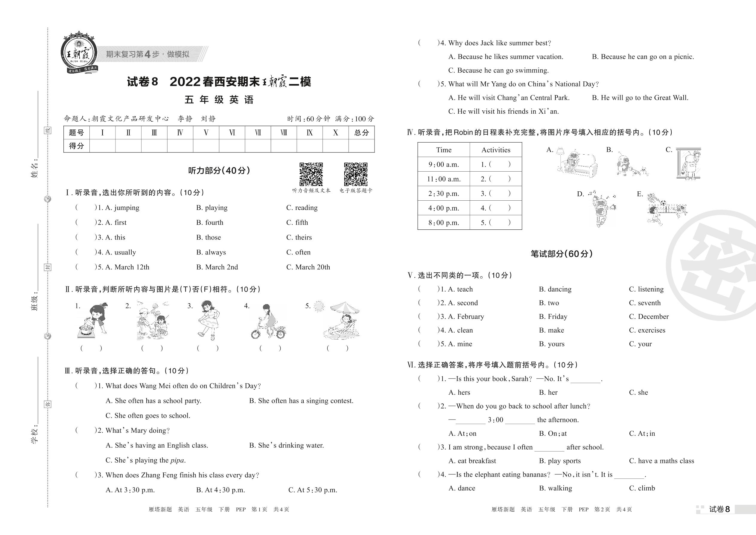 王朝霞期末模拟卷五年级下册英语(PEP版)_R220329165603903【8】