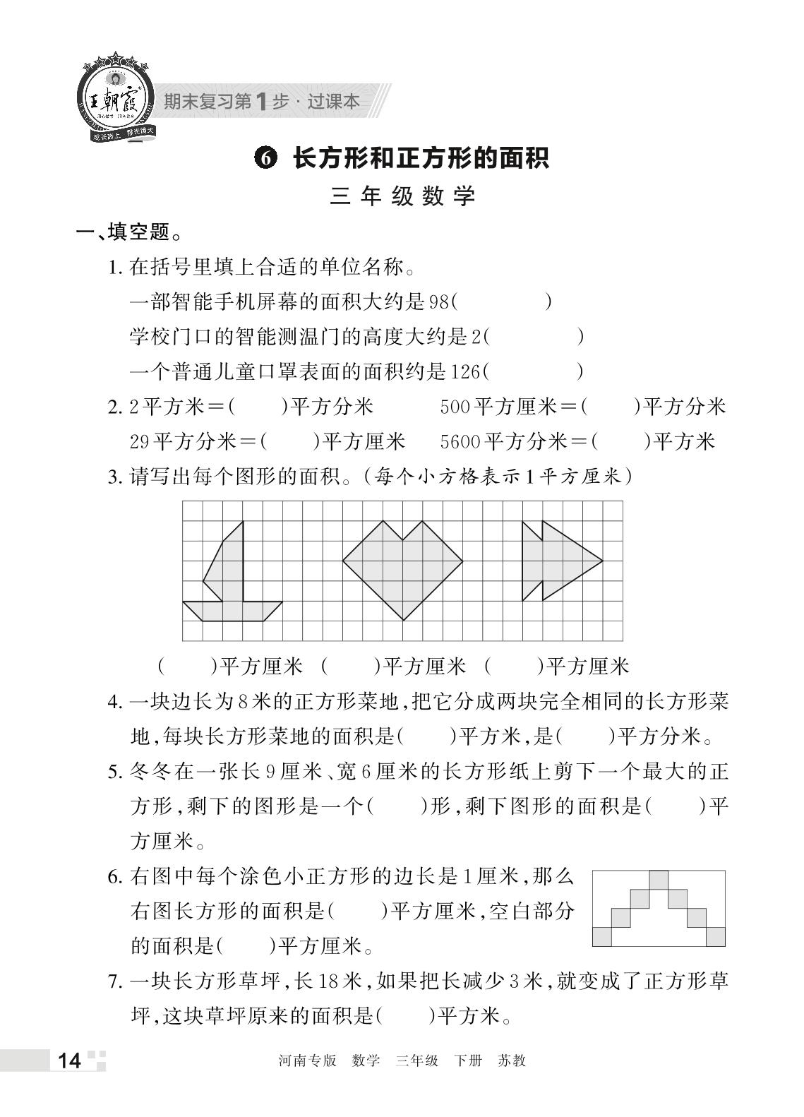 王朝霞期末过课本——6 长方形和正方形的面积三年级下册数学(苏教版)_R220329165951899