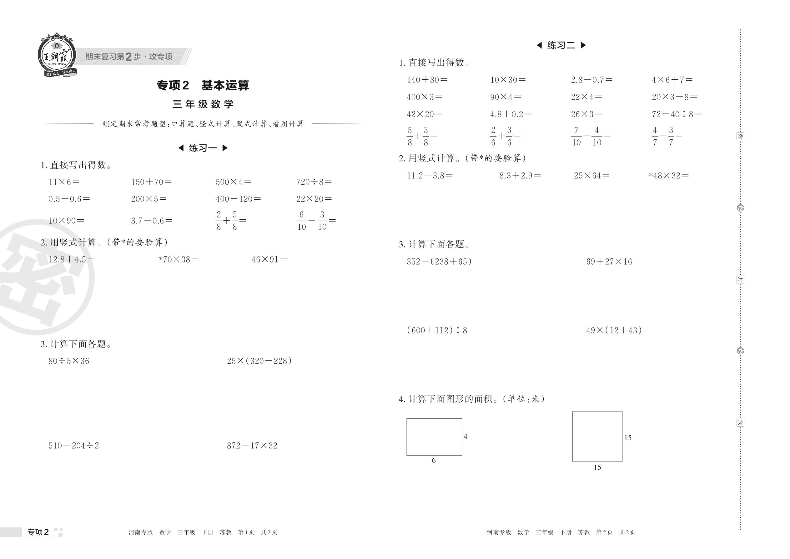 王朝霞期末专项卷——基本运算三年级下册数学(苏教版)_R220329165952817【2】