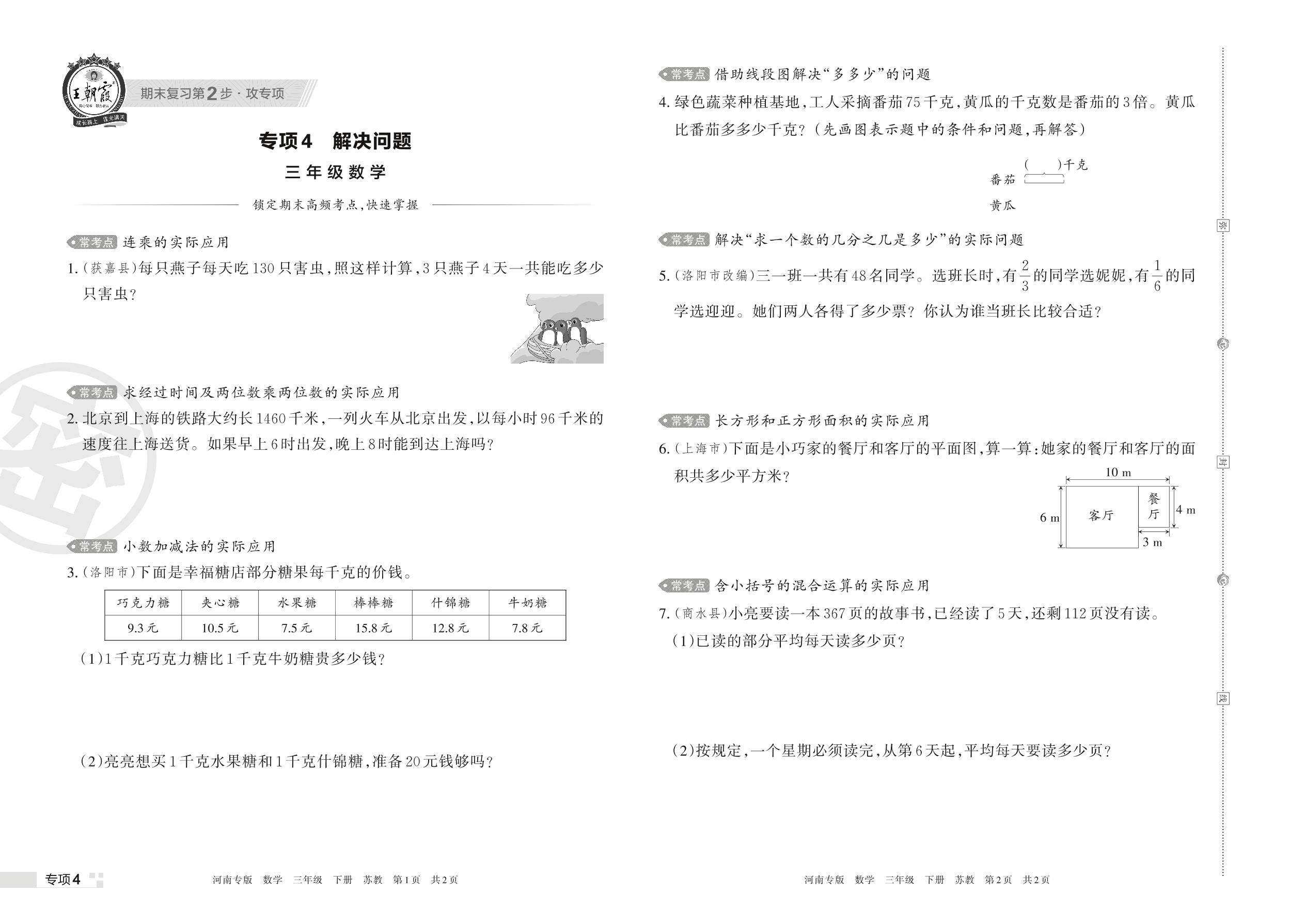 王朝霞期末专项卷——解决问题三年级下册数学(苏教版)_R220329165952649【4】
