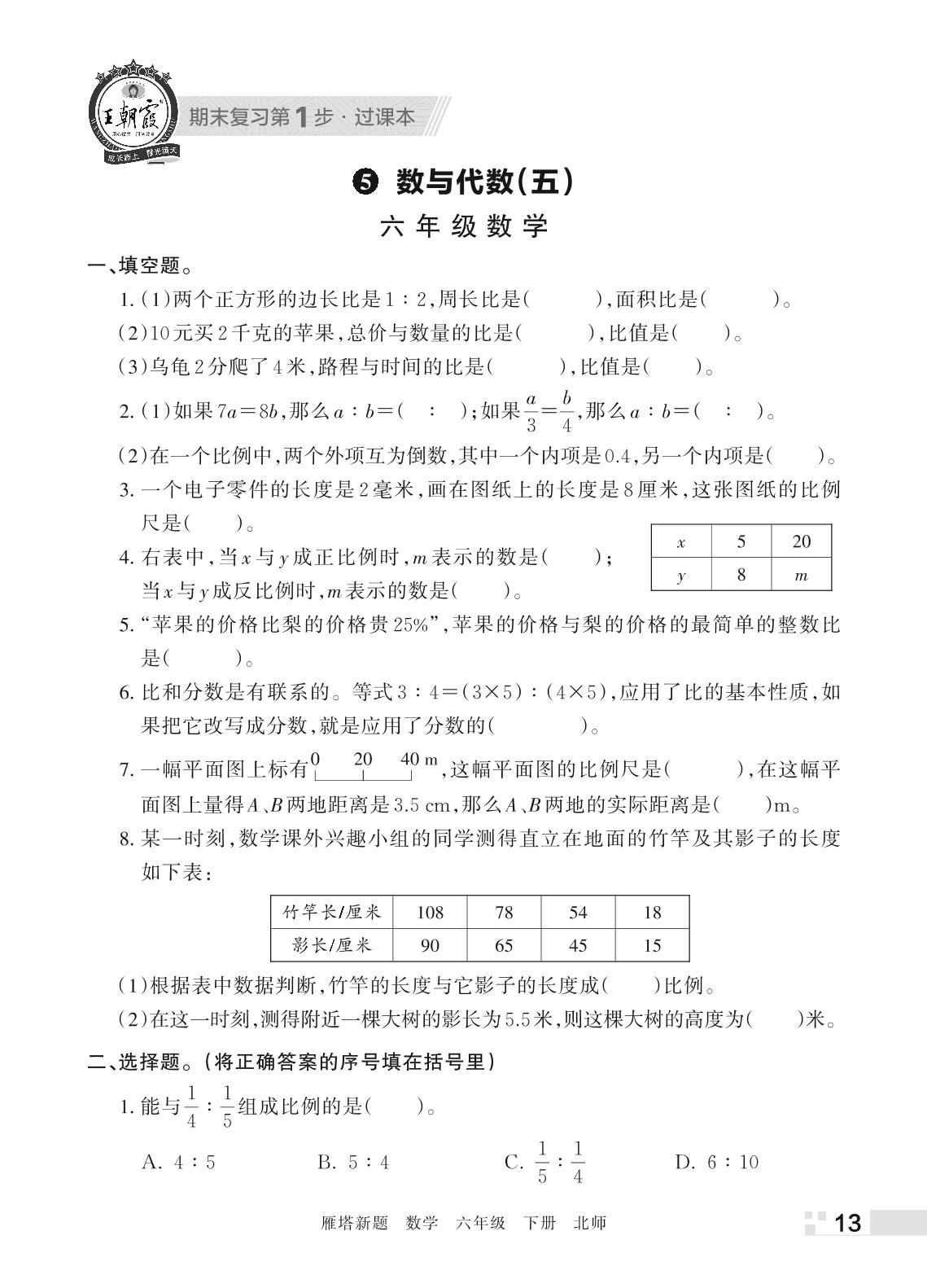 王朝霞期末过课本——5 数与代数(五)六年级下册数学(北师版)_R220329170051445