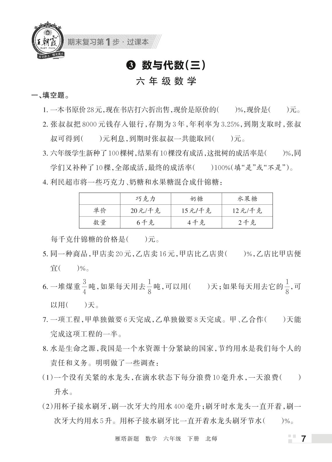 王朝霞期末过课本——3 数与代数(三)六年级下册数学(北师版)_R220329170052944