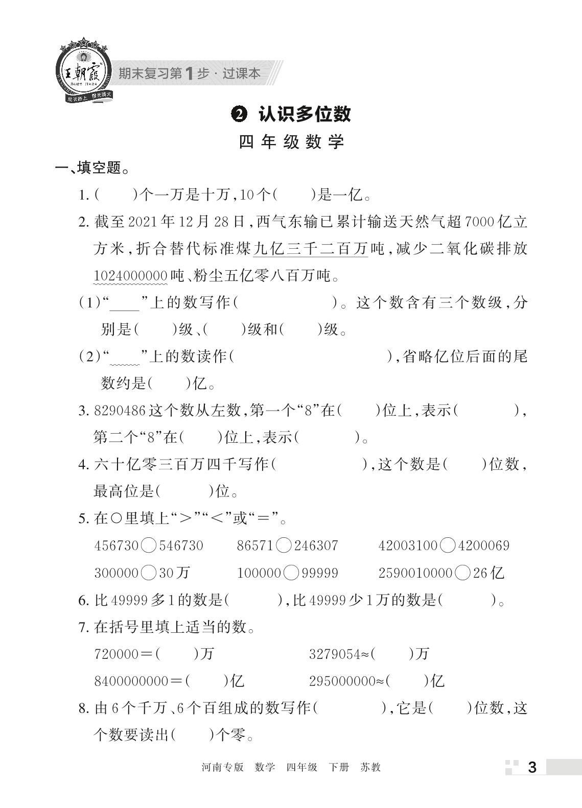 王朝霞期末过课本——2 认识多位数四年级下册数学(苏教版)_R220329170750784