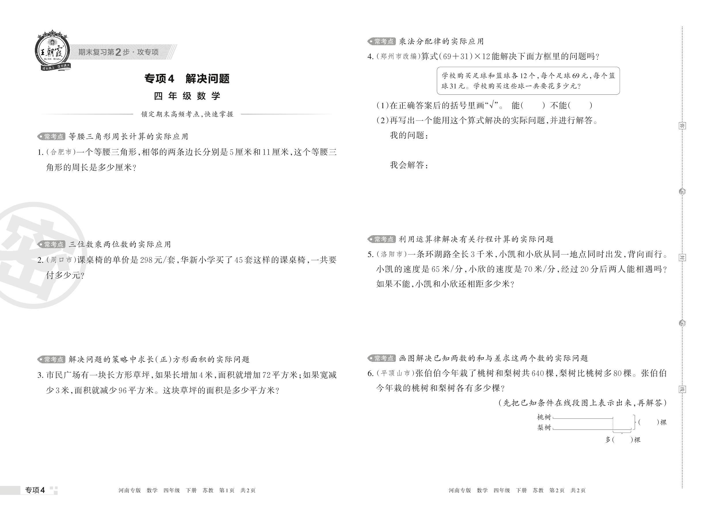 王朝霞期末专项卷——解决问题四年级下册数学(苏教版)_R220329170751410【4】