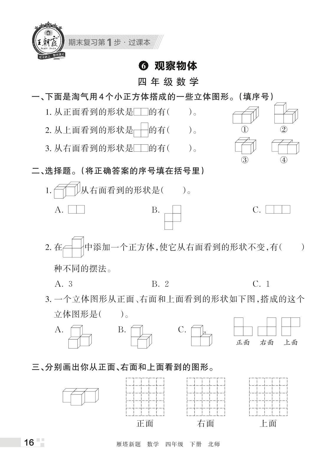 王朝霞期末过课本——6 观察物体四年级下册数学(北师版)_R220329171308397