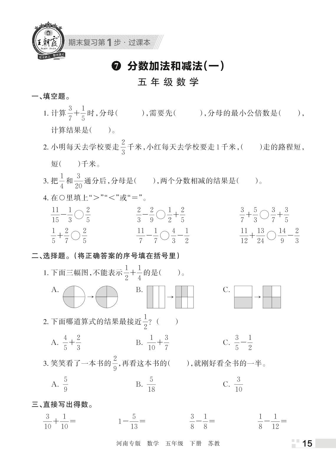 王朝霞期末过课本——7 分数加法和减法(一)五年级下册数学(苏教版)_R220329171532950