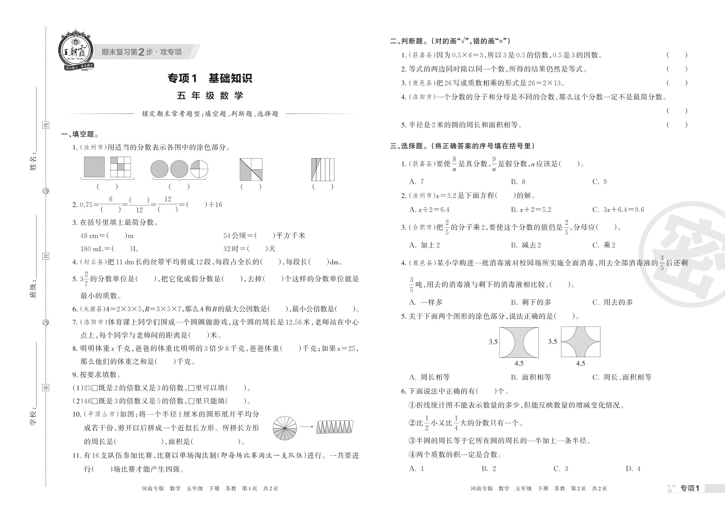 王朝霞期末专项卷——基础知识五年级下册数学(苏教版)_R220329171532070【1】