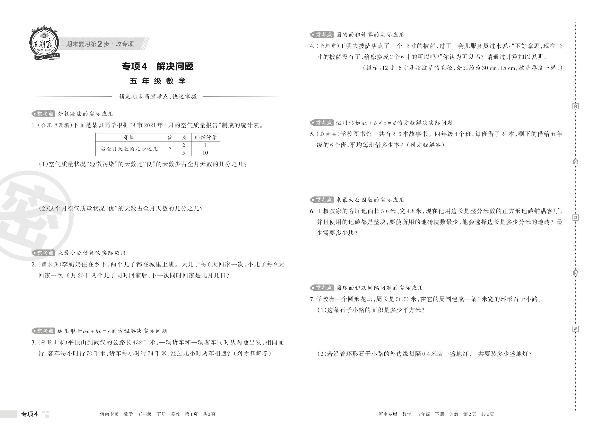 王朝霞期末专项卷——解决问题五年级下册数学(苏教版)_R220329171533459【4】