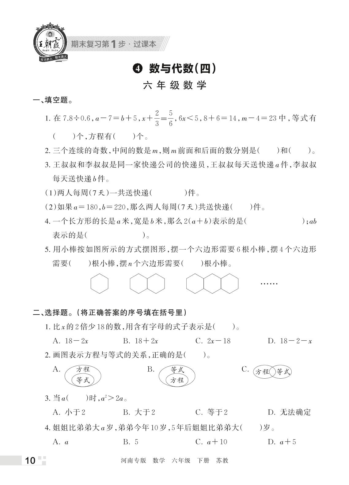 王朝霞期末过课本——4 数与代数(四)六年级下册数学(苏教版)_R220329172225544