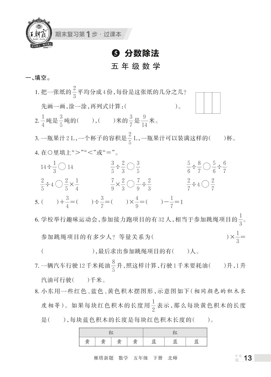 王朝霞期末过课本——5 分数除法五年级下册数学(北师版)_R220329172259406