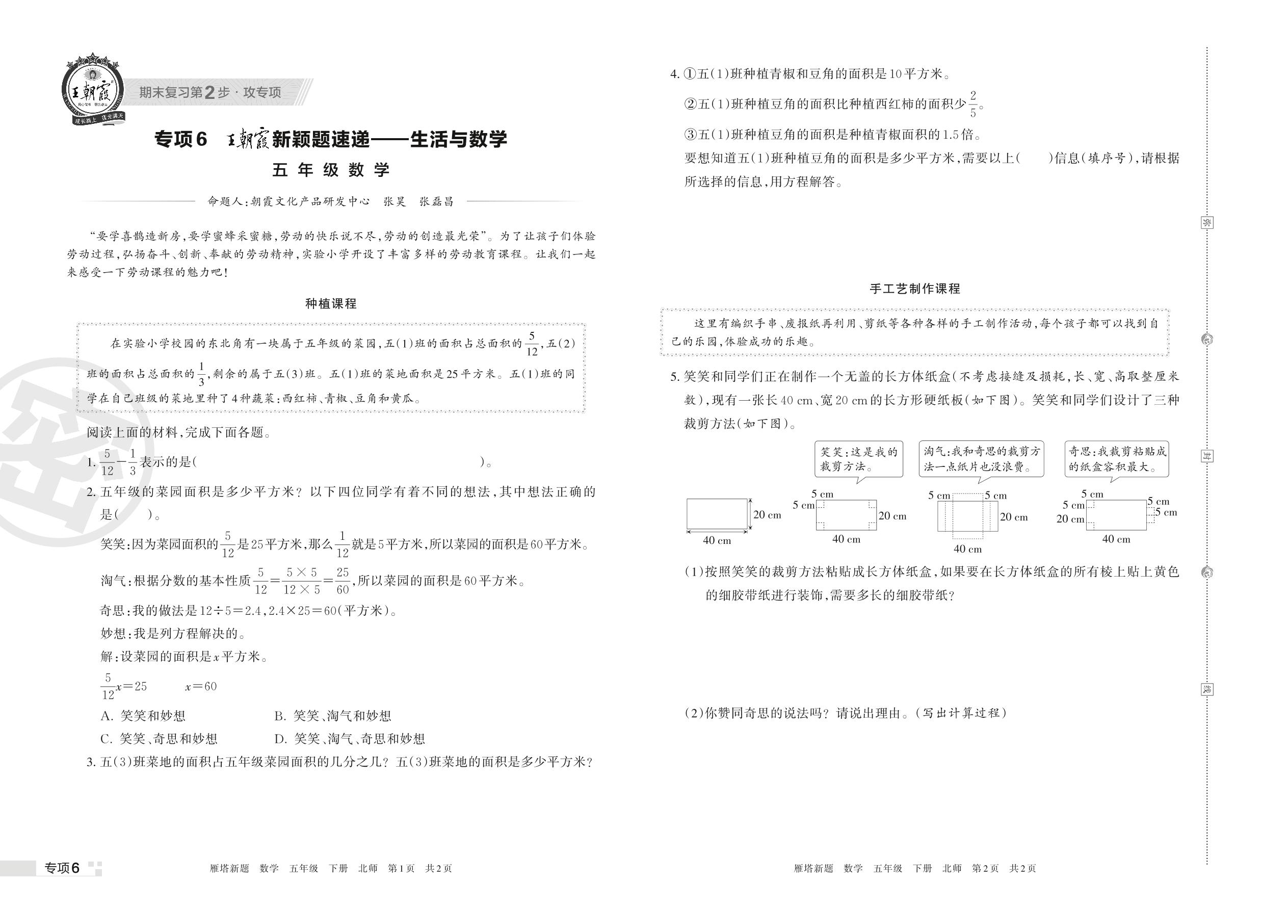 王朝霞期末专项卷——新颖题速递:生活与数学五年级下册数学(北师版)_R220329172300199【6】