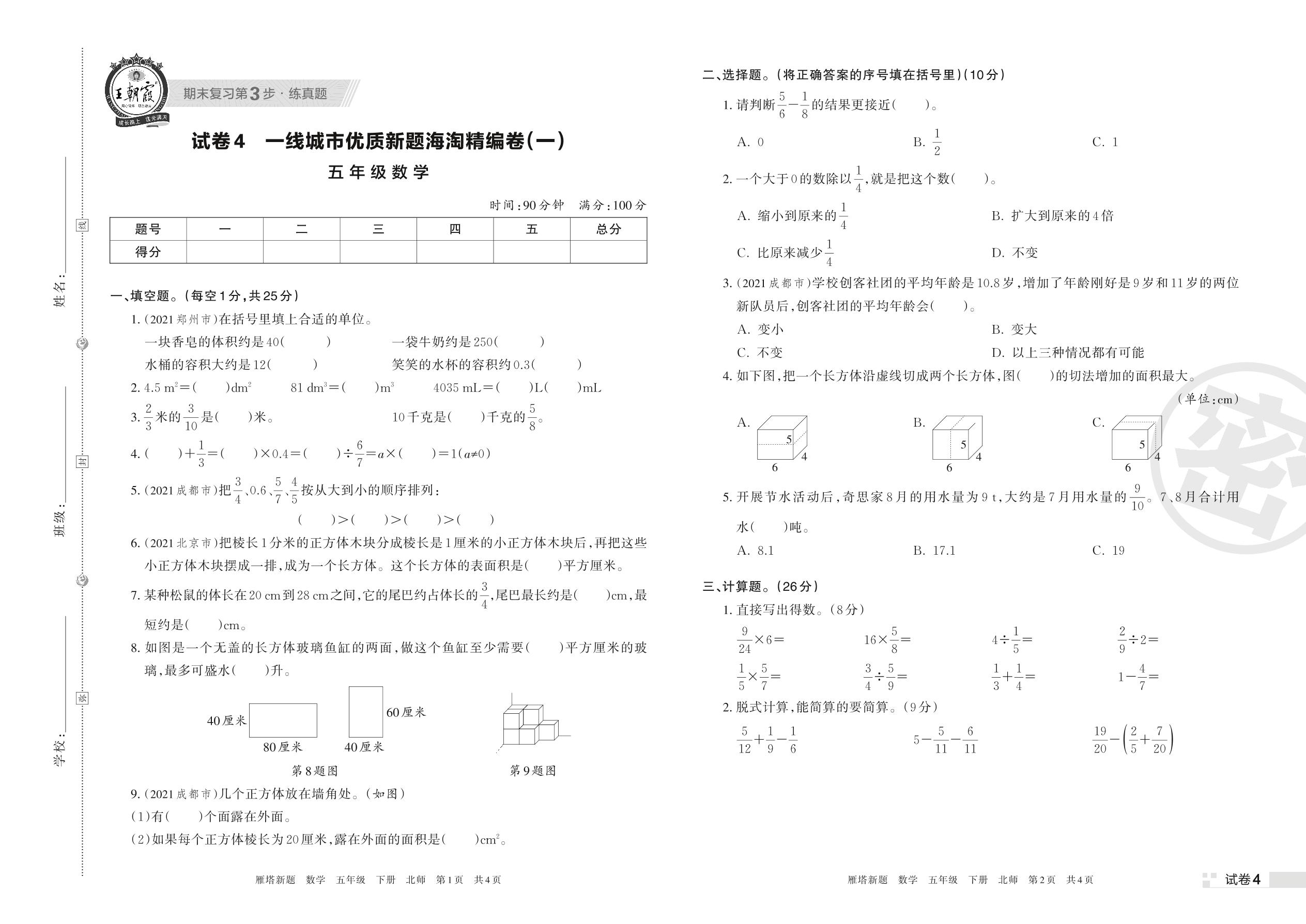 一线城市优质新题海淘精编卷(一)五年级下册数学(北师版)【4】