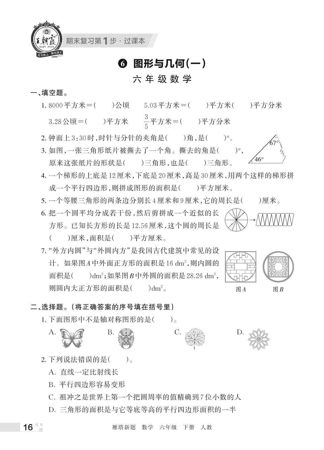 王朝霞期末过课本——6 图形与几何(一)六年级下册数学(人教版)_R220330090345528