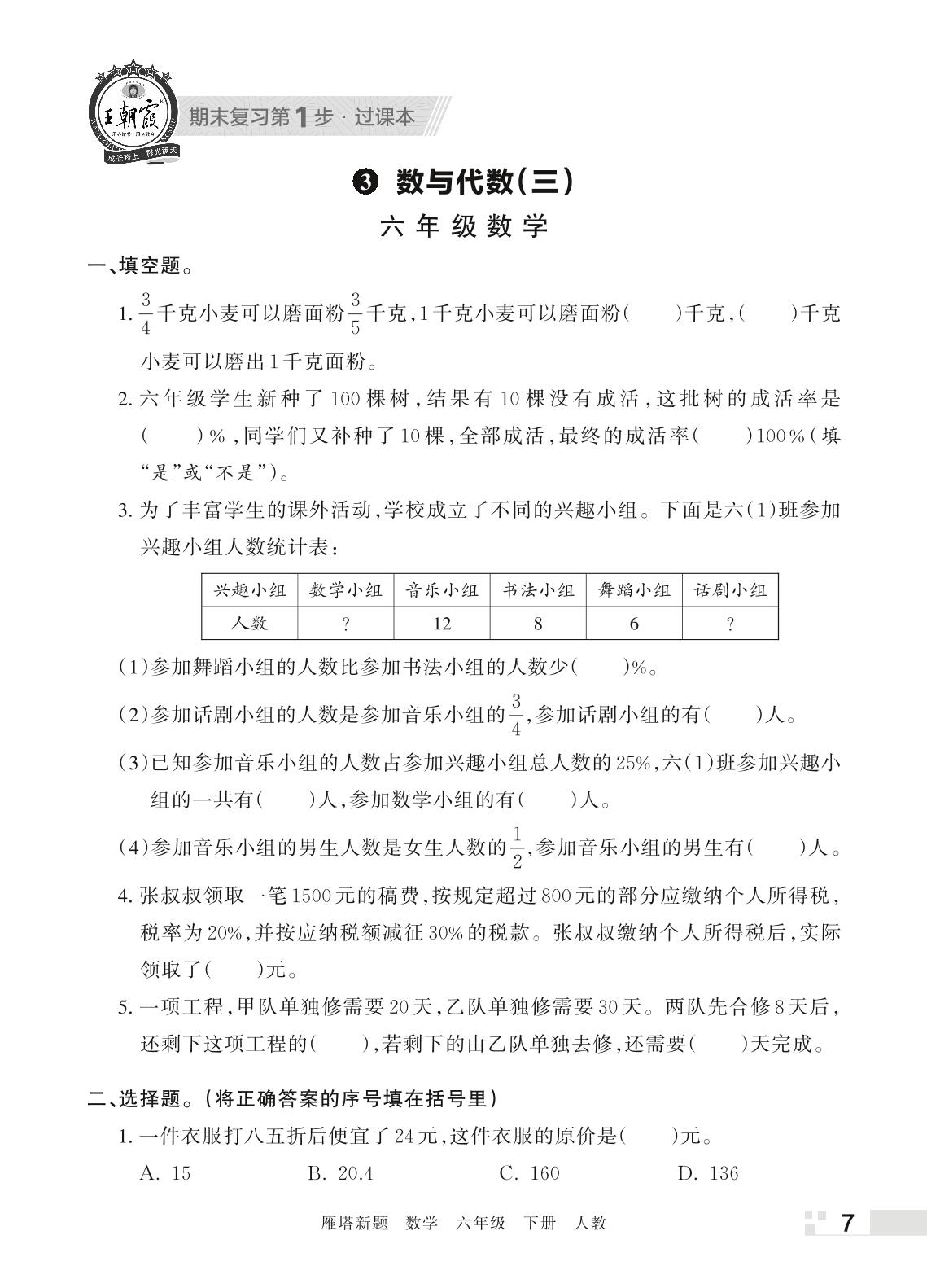王朝霞期末过课本——3 数与代数(三)六年级下册数学(人教版)_R220330090345944