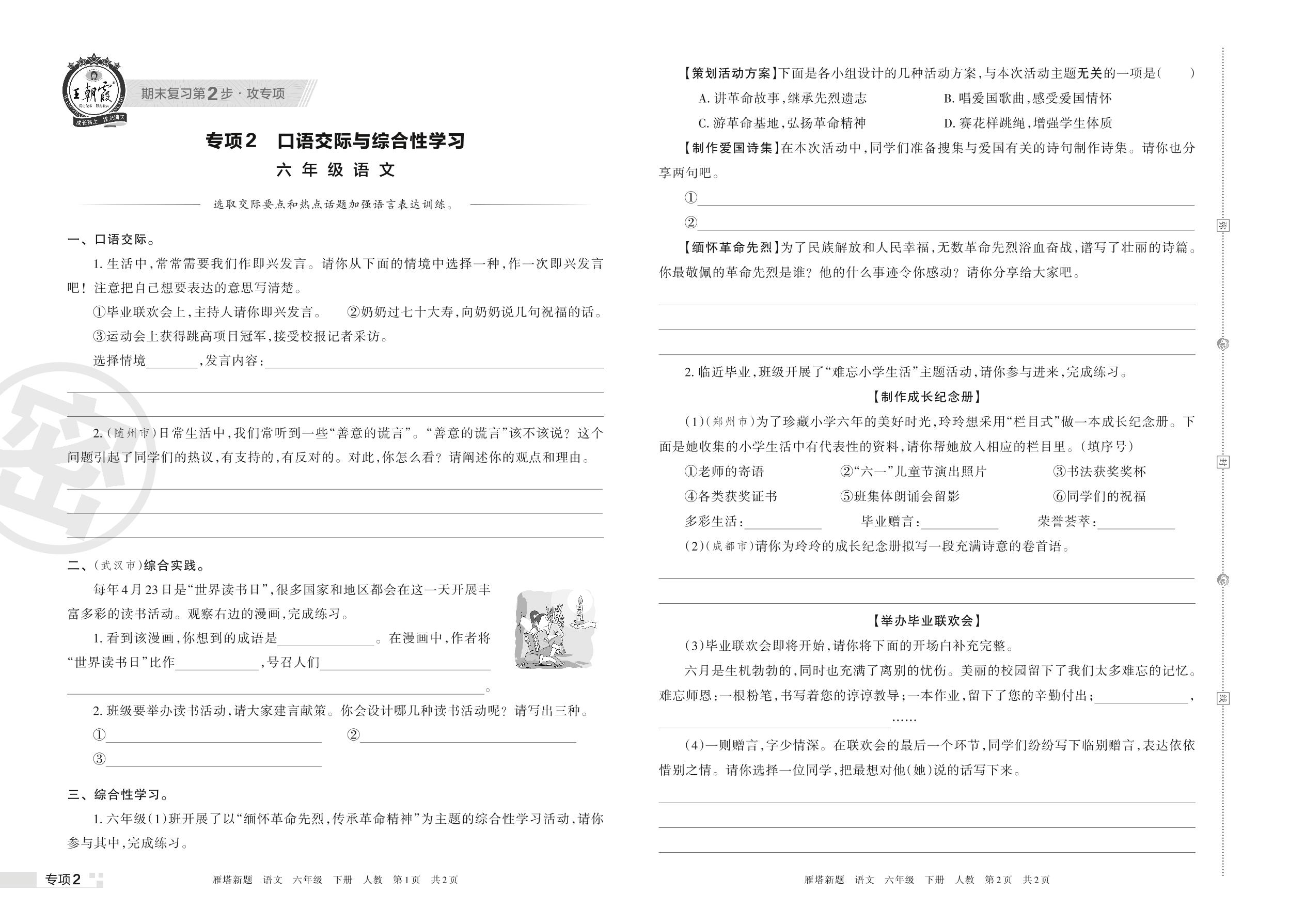 王朝霞期末专项卷——口语交际与综合性学习六年级下册语文(人教版)_R220330092351031【2】