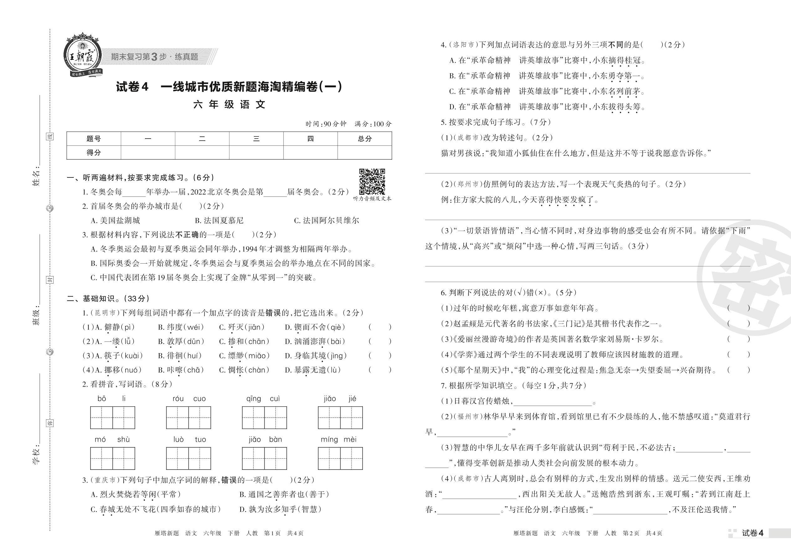 一线城市优质新题海淘精编卷(一)六年级下册语文(人教版)【4】