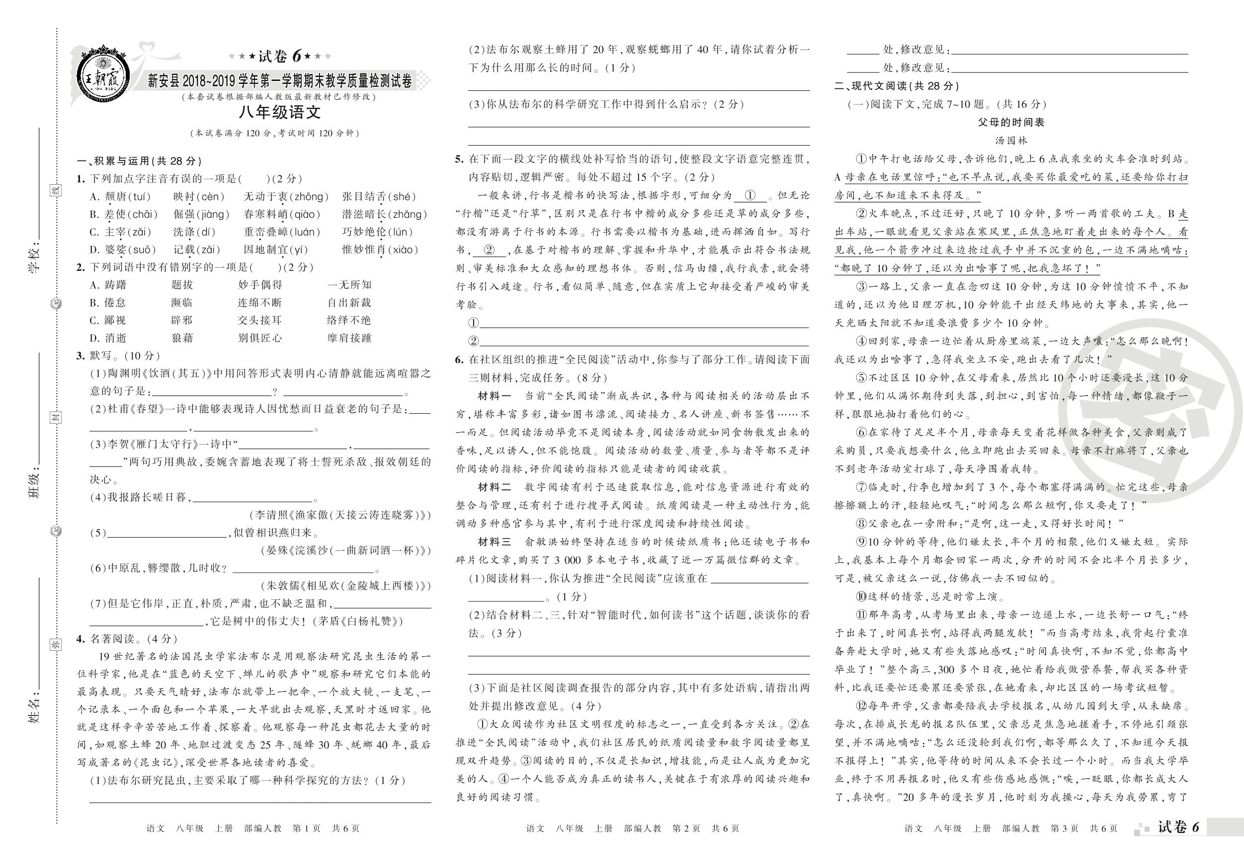 2018-2019学年第一学期洛阳市新安县八年级语文试卷(人教版)【6】