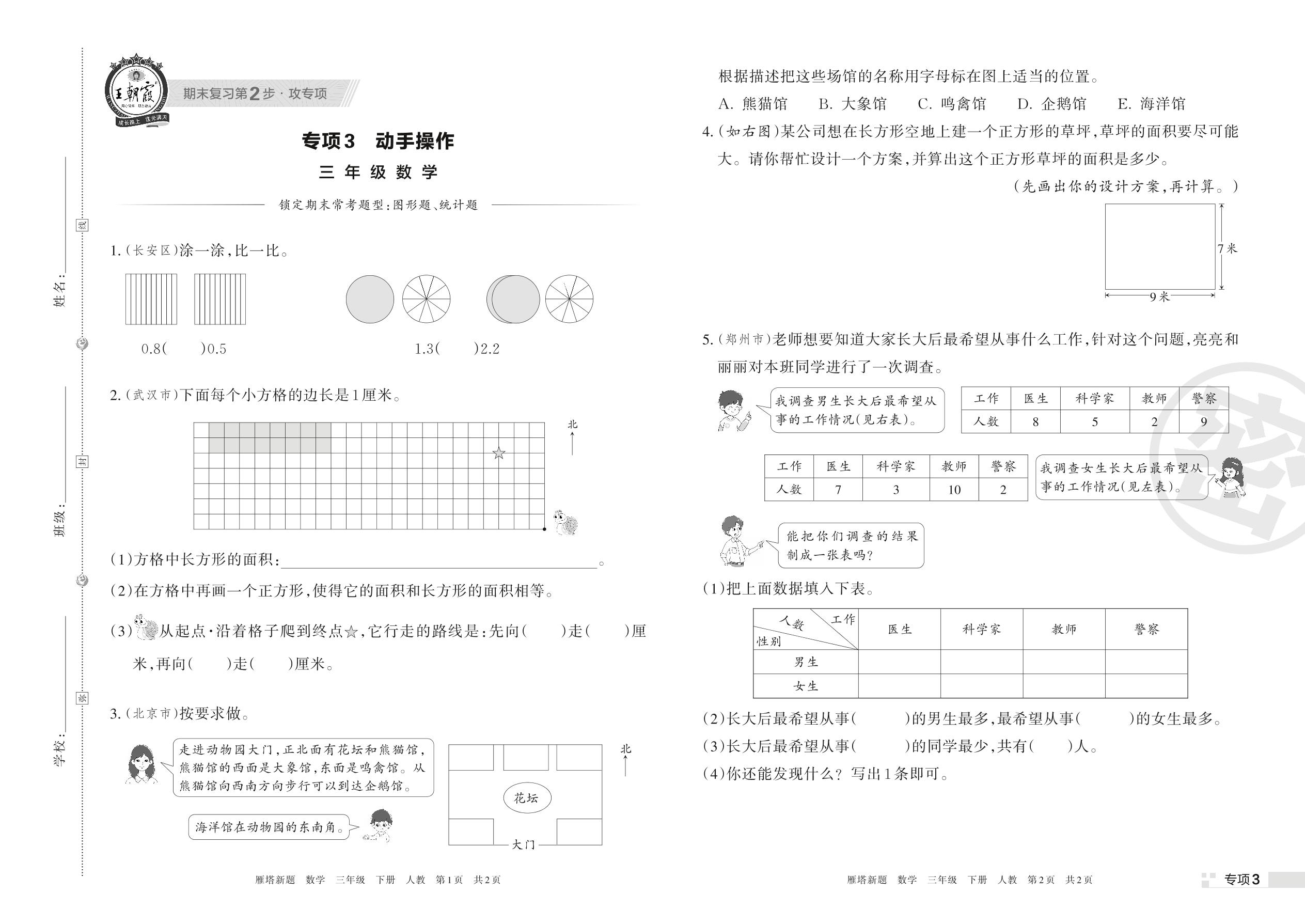 王朝霞期末专项卷——动手操作三年级下册数学(人教版)_R220330101908626【3】