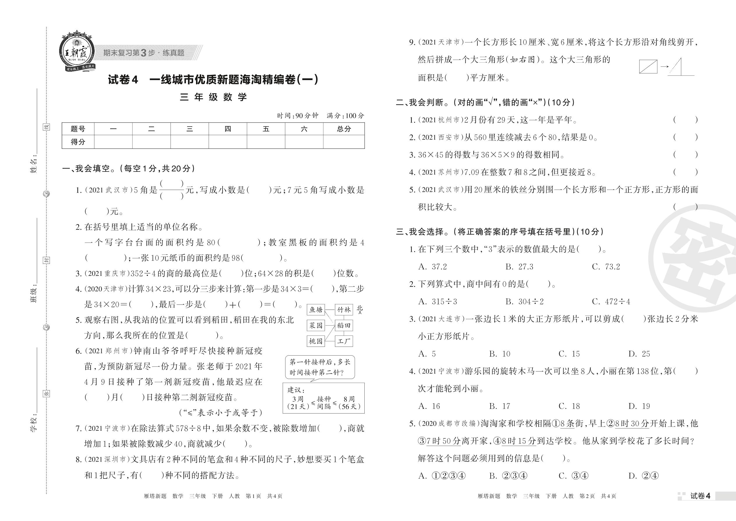 一线城市优质新题海淘精编卷(一)三年级下册数学(人教版)【4】