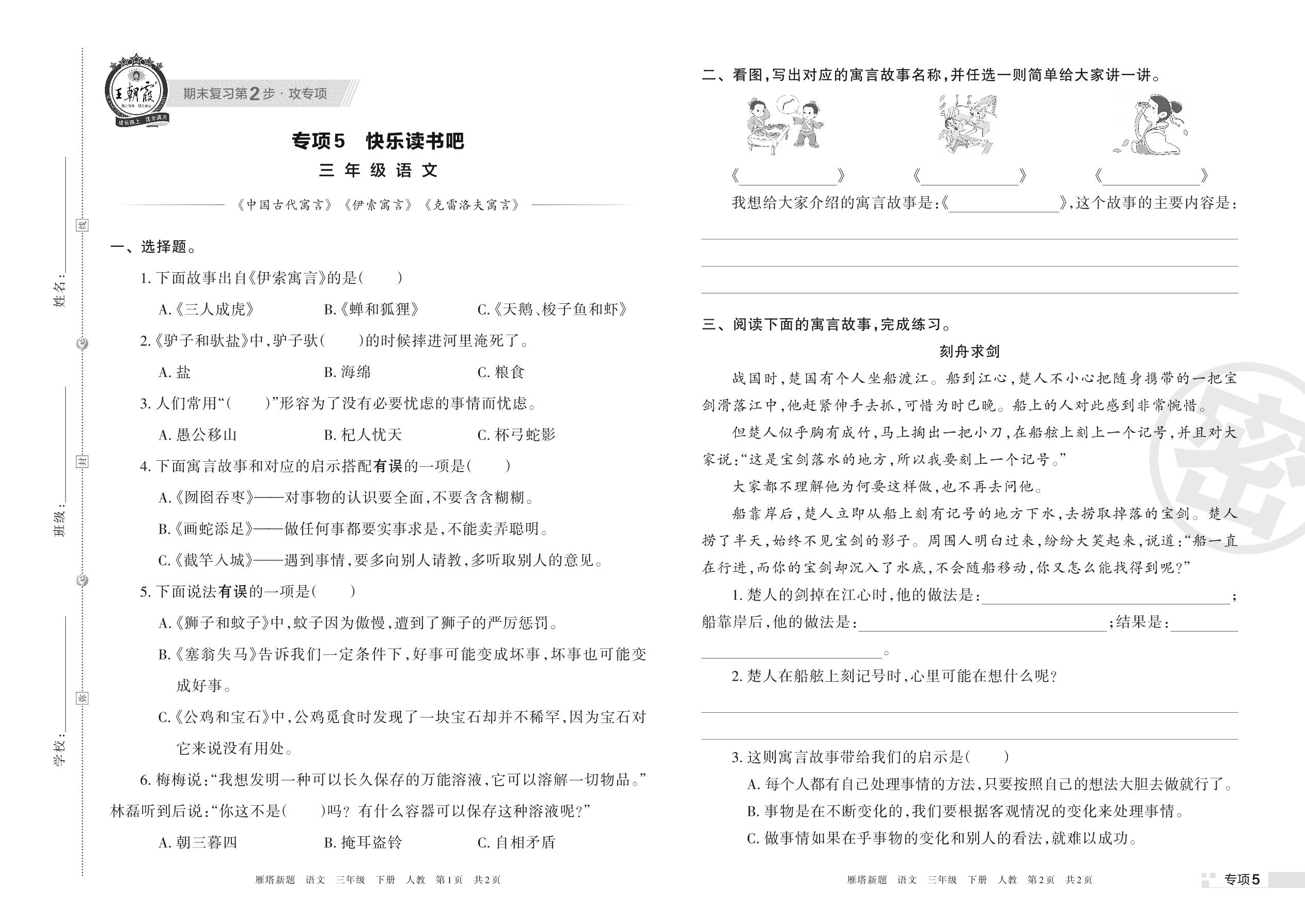 王朝霞期末专项卷——快乐读书吧三年级下册语文(人教版)_R220330102458673【5】