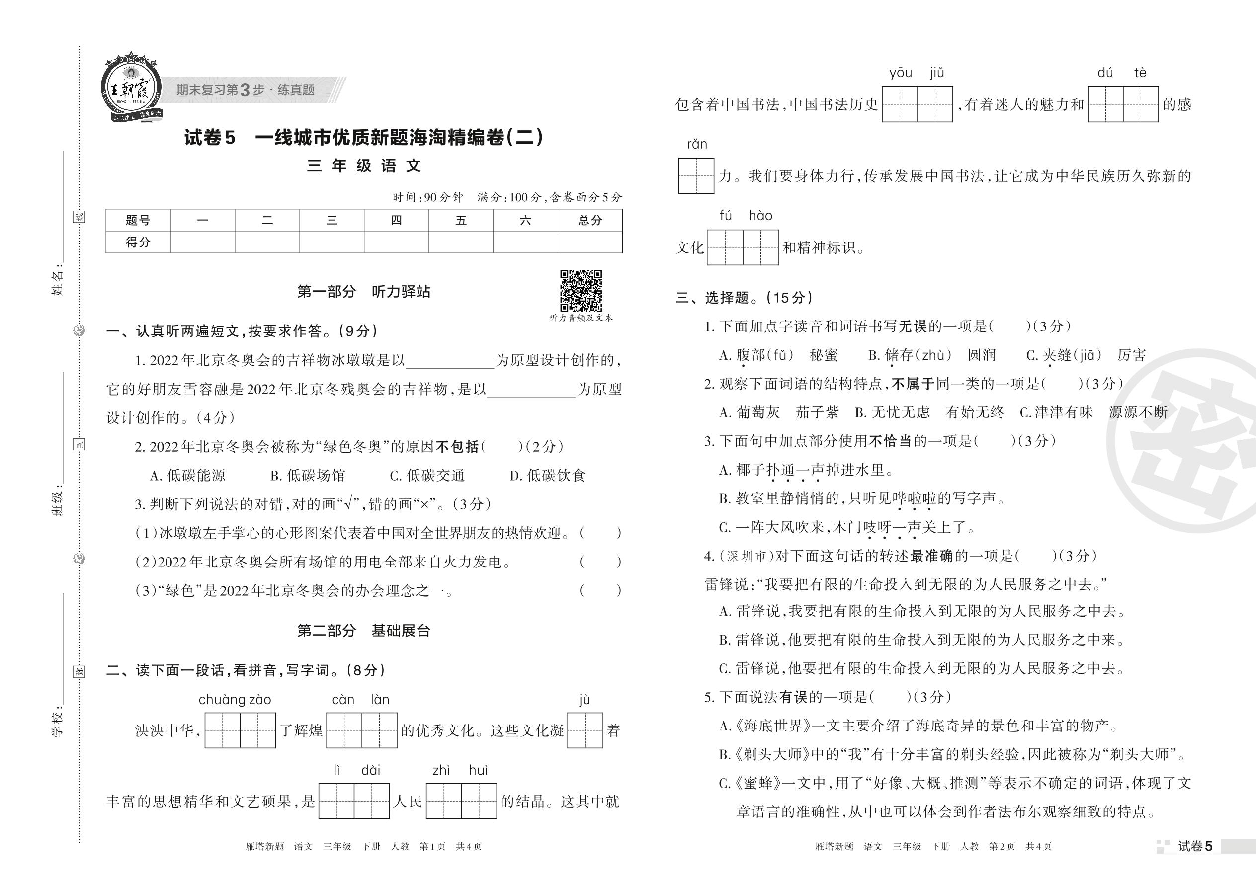 一线城市优质新题海淘精编卷(二)三年级下册语文(人教版)【5】