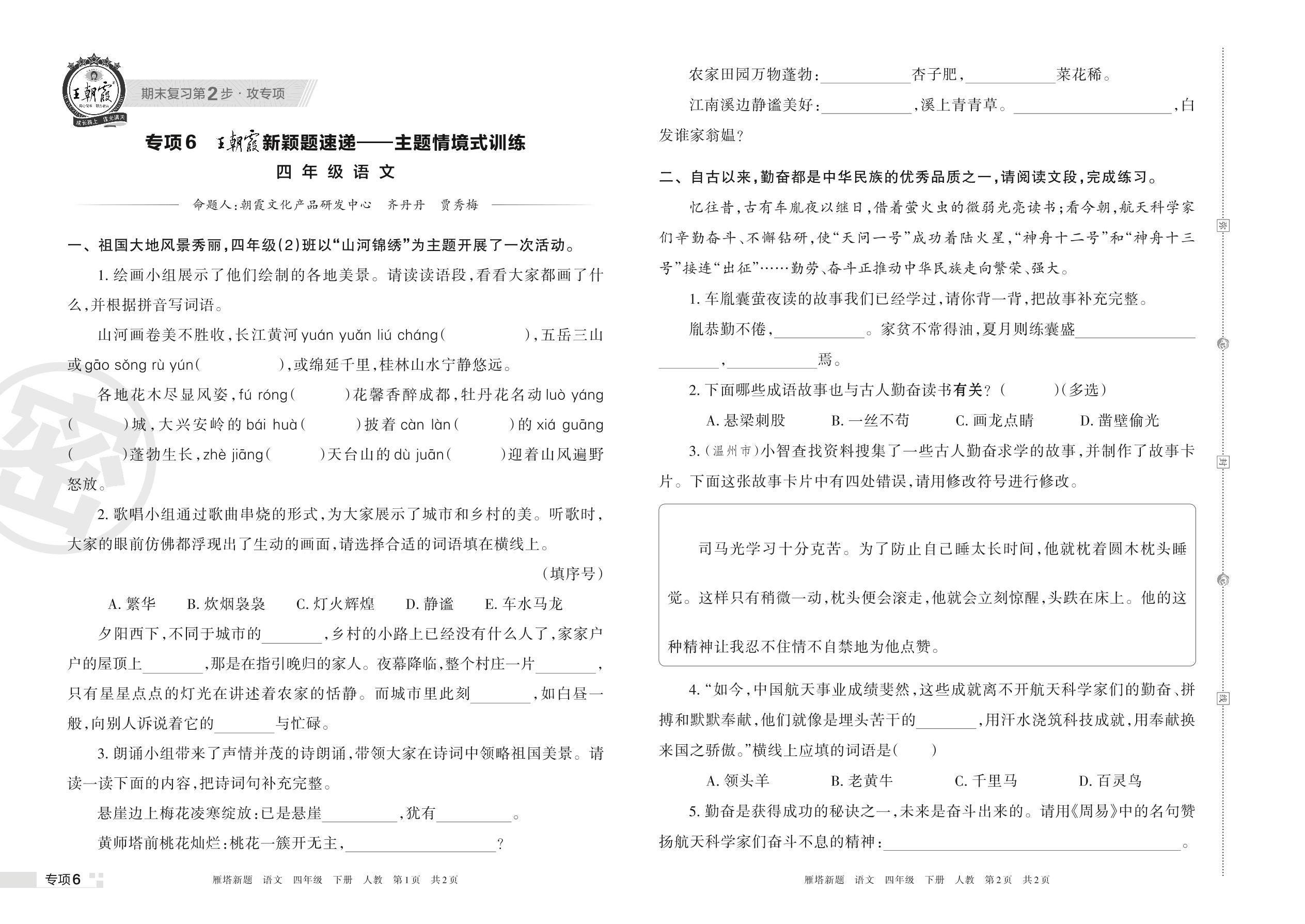 王朝霞期末专项卷——新颖题速递:主题情境式训练四年级下册语文(人教版)_R220330104503833【6】