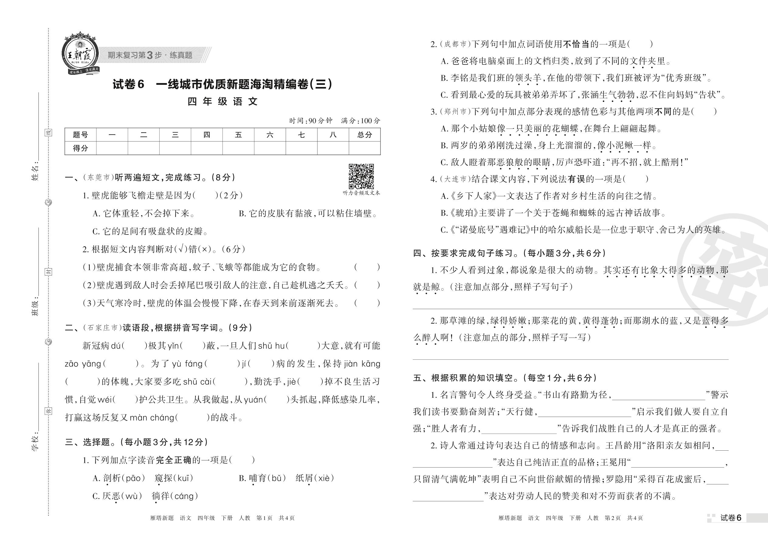 一线城市优质新题海淘精编卷(三)四年级下册语文(人教版)【6】