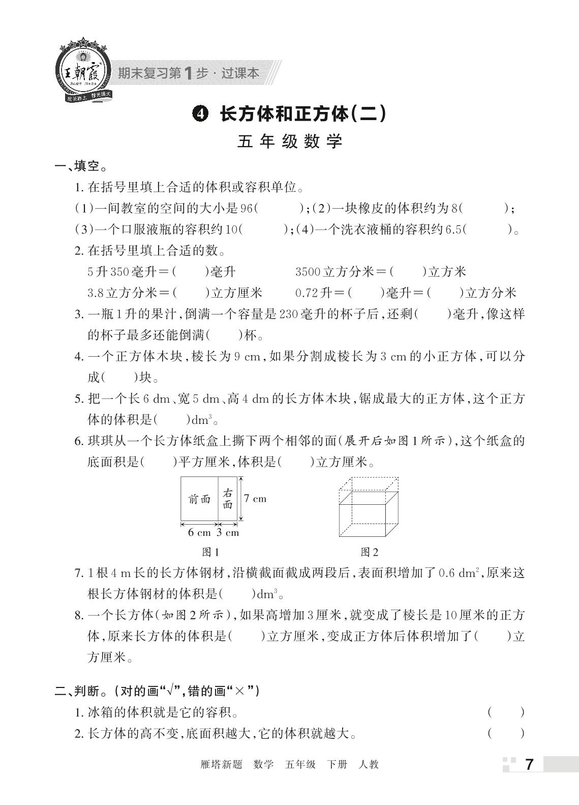 王朝霞期末过课本——4 长方体和正方体(二)五年级下册数学(人教版)_R220330105200517