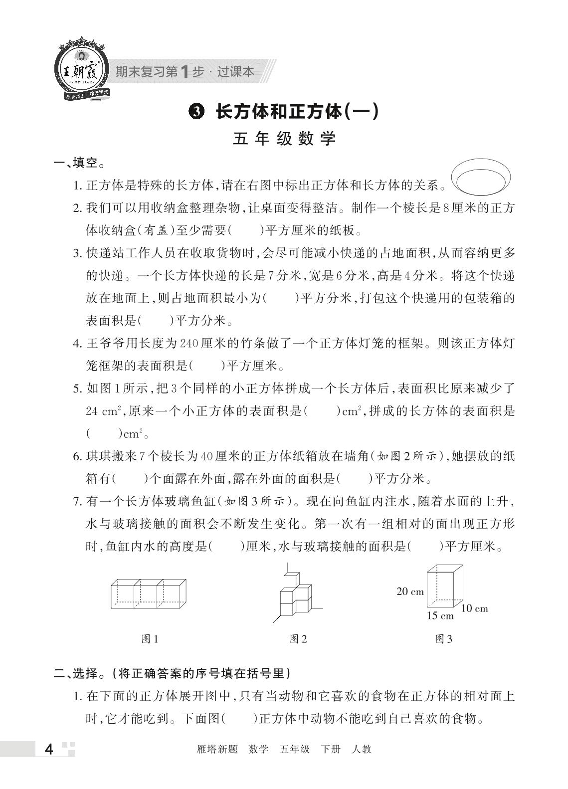 王朝霞期末过课本——3 长方体和正方体(一)五年级下册数学(人教版)_R220330105200221