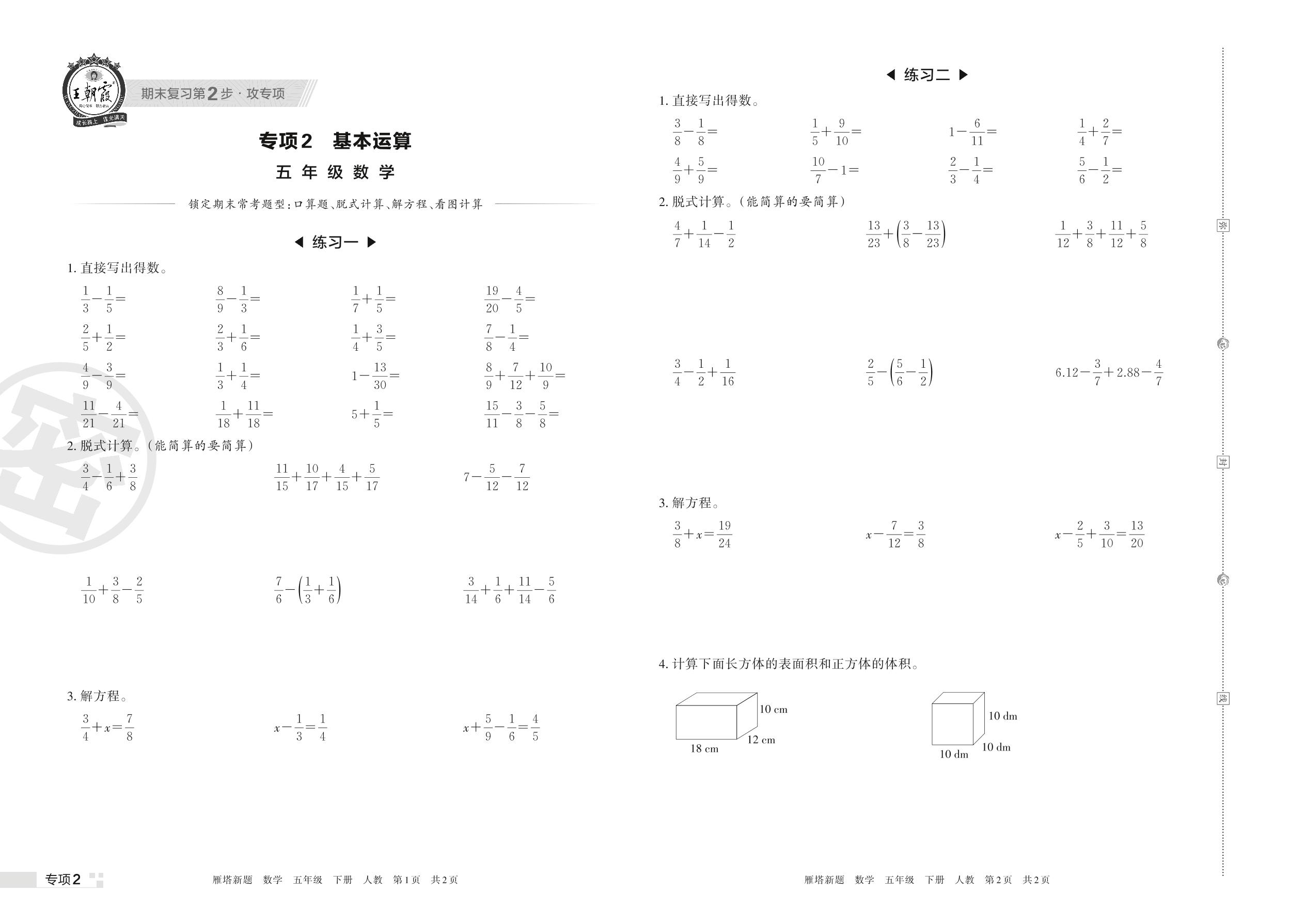 王朝霞期末专项卷——基本运算五年级下册数学(人教版)_R220330105200861【2】