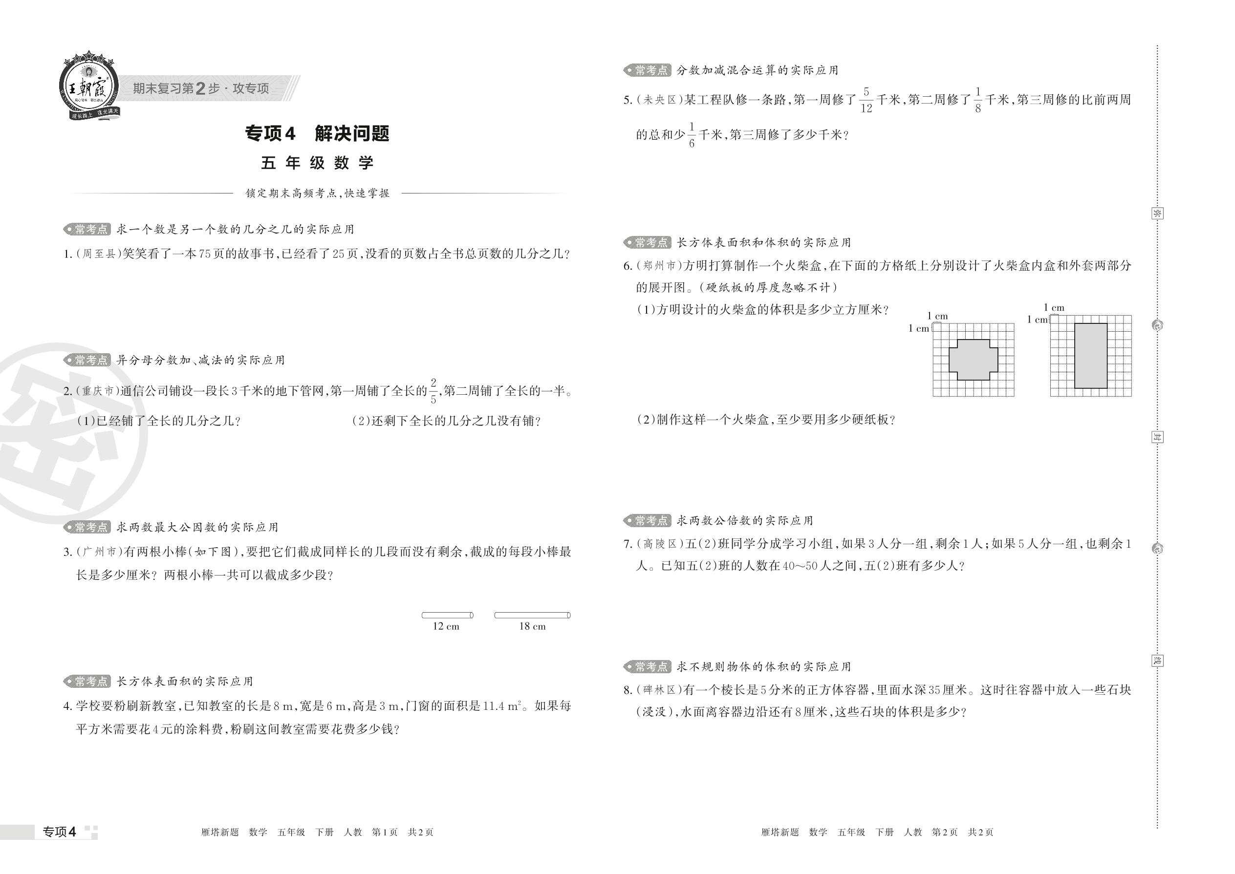 王朝霞期末专项卷——解决问题五年级下册数学(人教版)_R220330105201927【4】