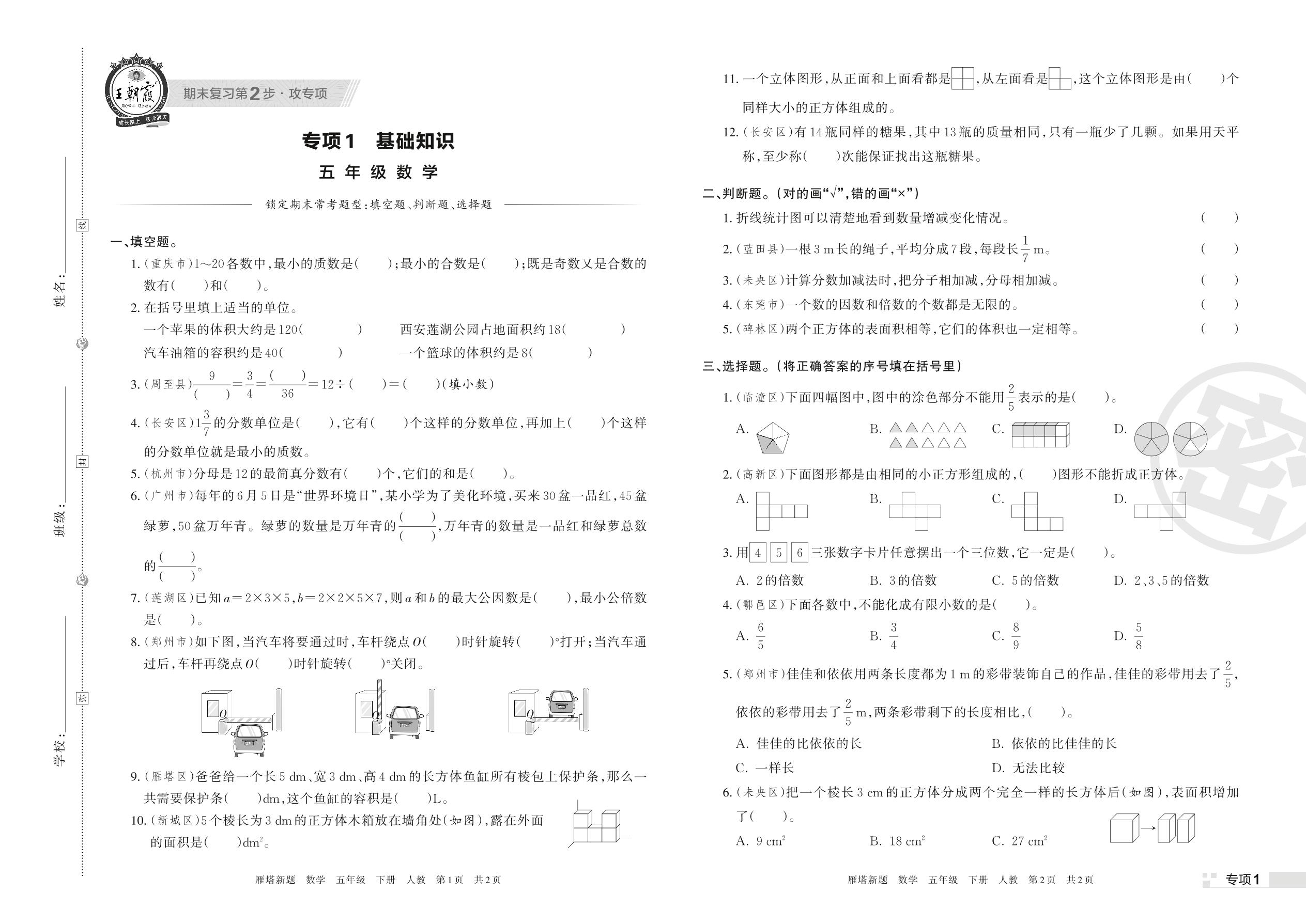 王朝霞期末专项卷——基础知识五年级下册数学(人教版)_R220330105201620【1】