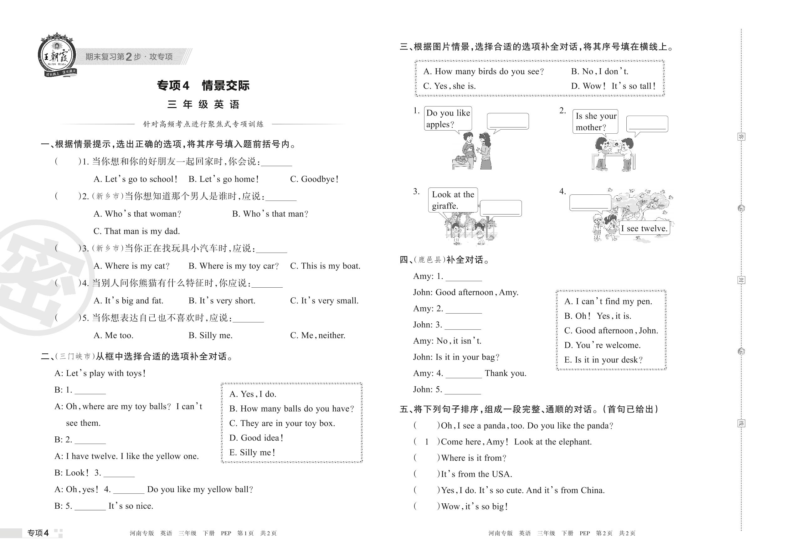 王朝霞期末专项卷——情景交际三年级下册英语(PEP版)_R220331094940391【4】