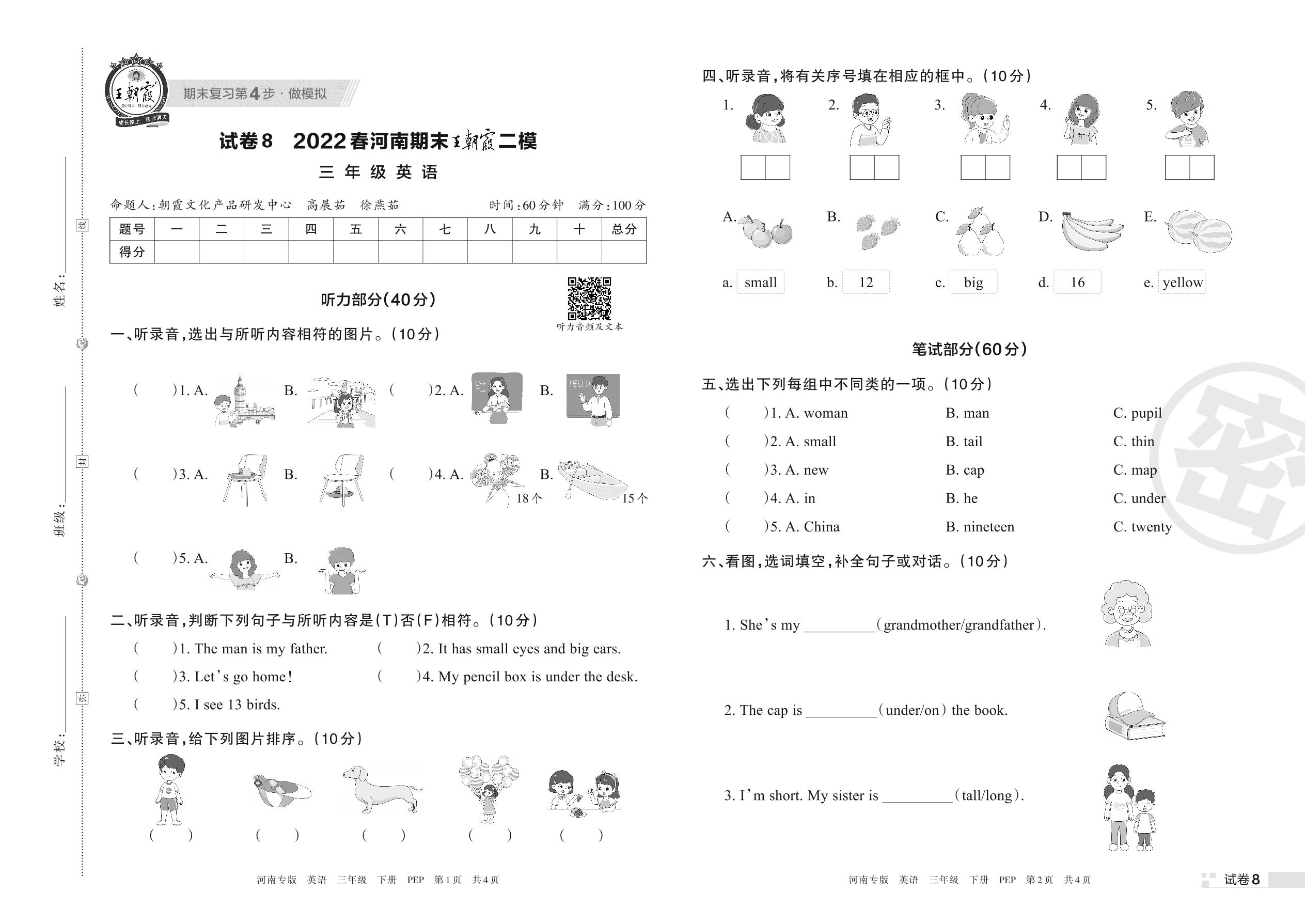 王朝霞期末模拟卷三年级下册英语(PEP版)_R220331094941103【8】