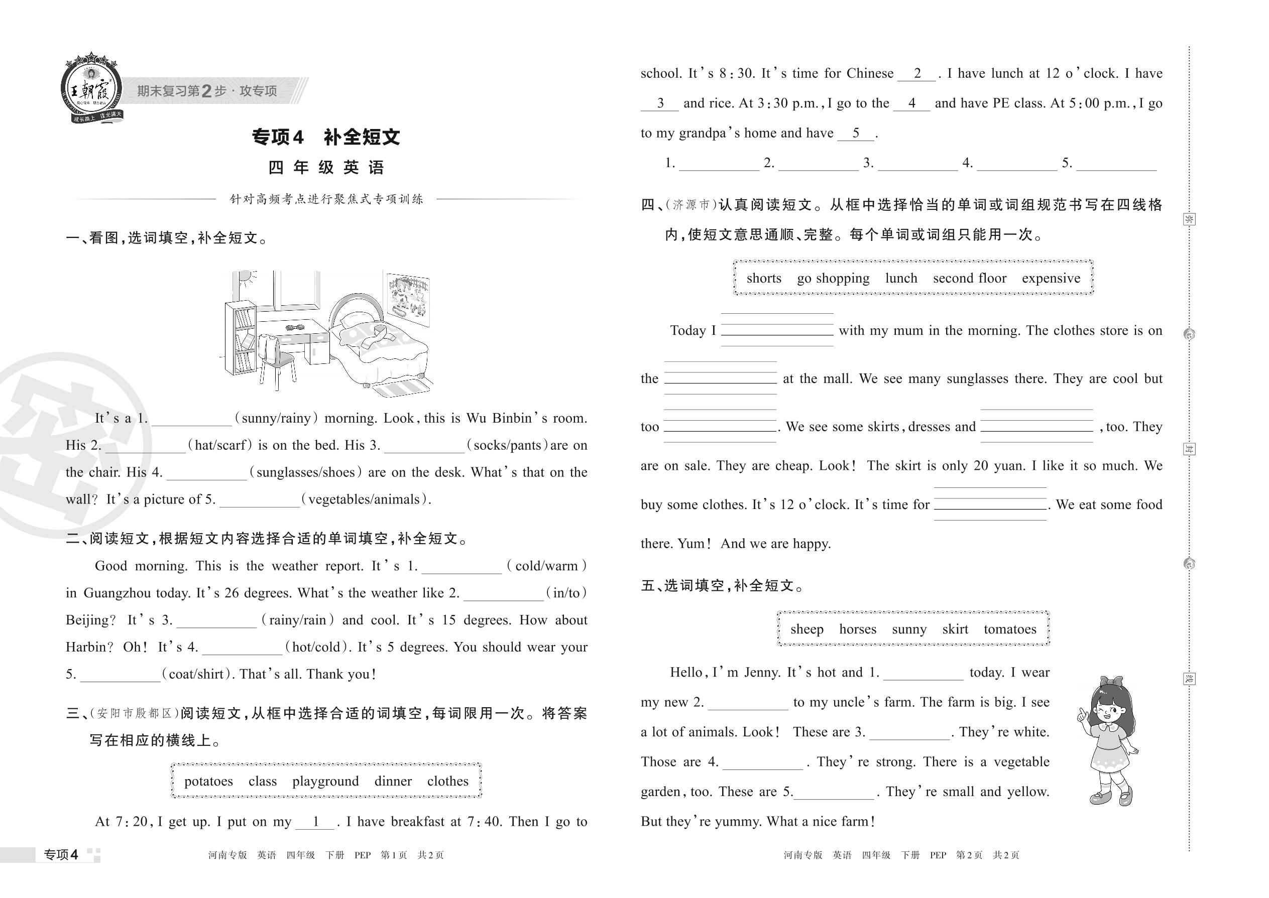 王朝霞期末专项卷——补全短文四年级下册英语(PEP版)_R220331095526141【4】