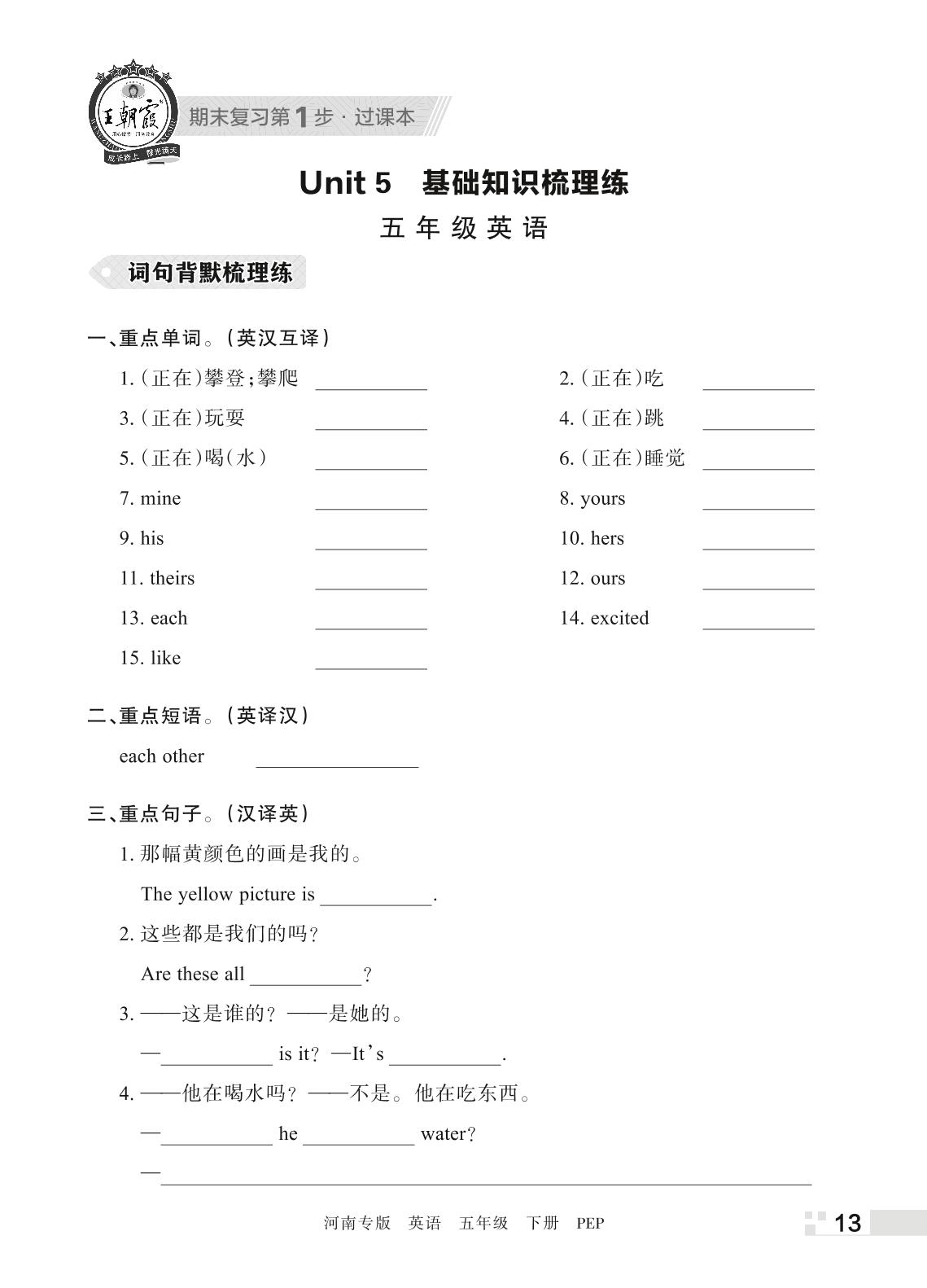 王朝霞期末过课本——Unit 5 基础知识梳理练五年级下册英语(PEP版)_R220331100217216
